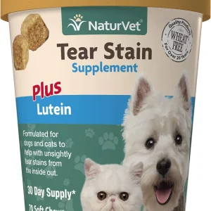 NaturVet – Tear Stain Plus Luteína – Elimina las antiestéticas manchas de lágrima 70 Masticables