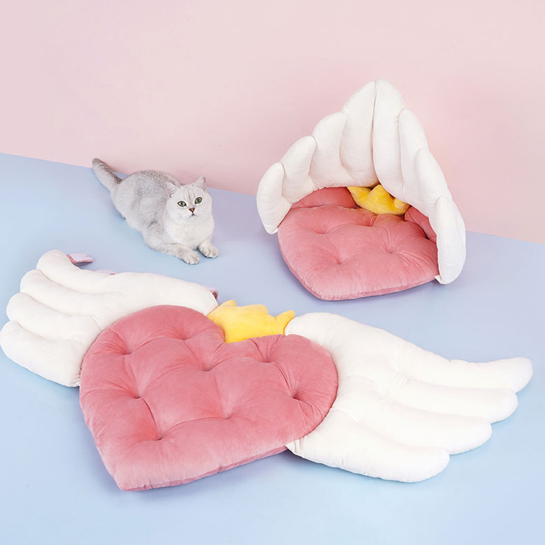 The cute dual-purpose angel pet bed adds another playful decoration to the living space of you and your pet. Tiling combines two usages to meet the various preferences of pets, which is convenient and practical.