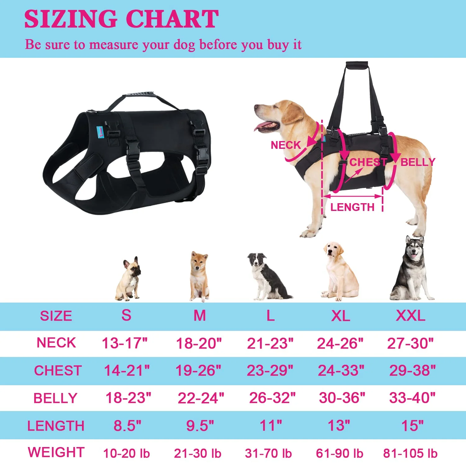 - Soporte de cuerpo completo: el arnés yrenoer distribuye el peso en la parte inferior de todo el perro a través de un diseño razonable, protege la columna vertebral del perro. Estamos diseñando cuidadosamente productos de alta calidad para ayudar a los perros a mejorar su calidad de vida.