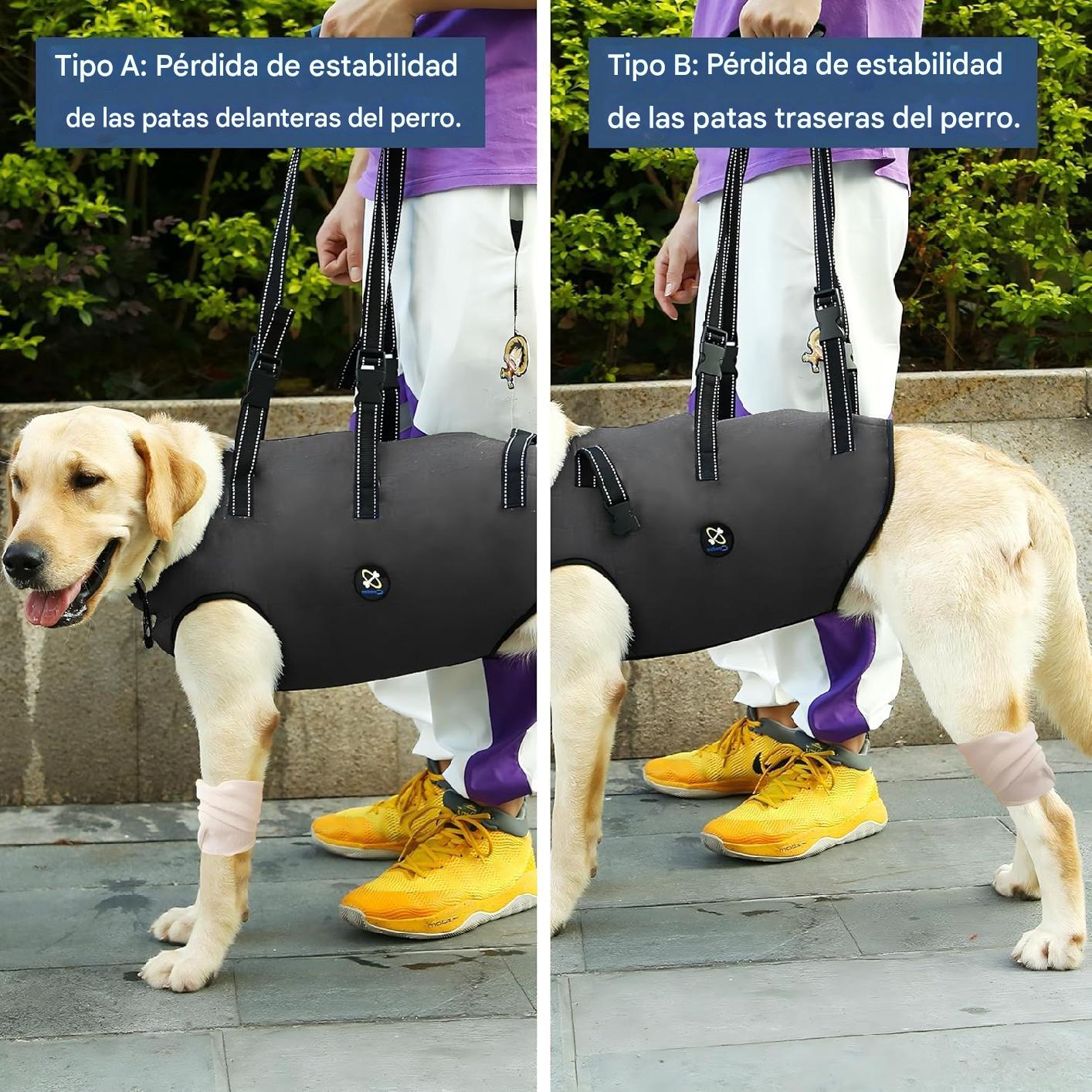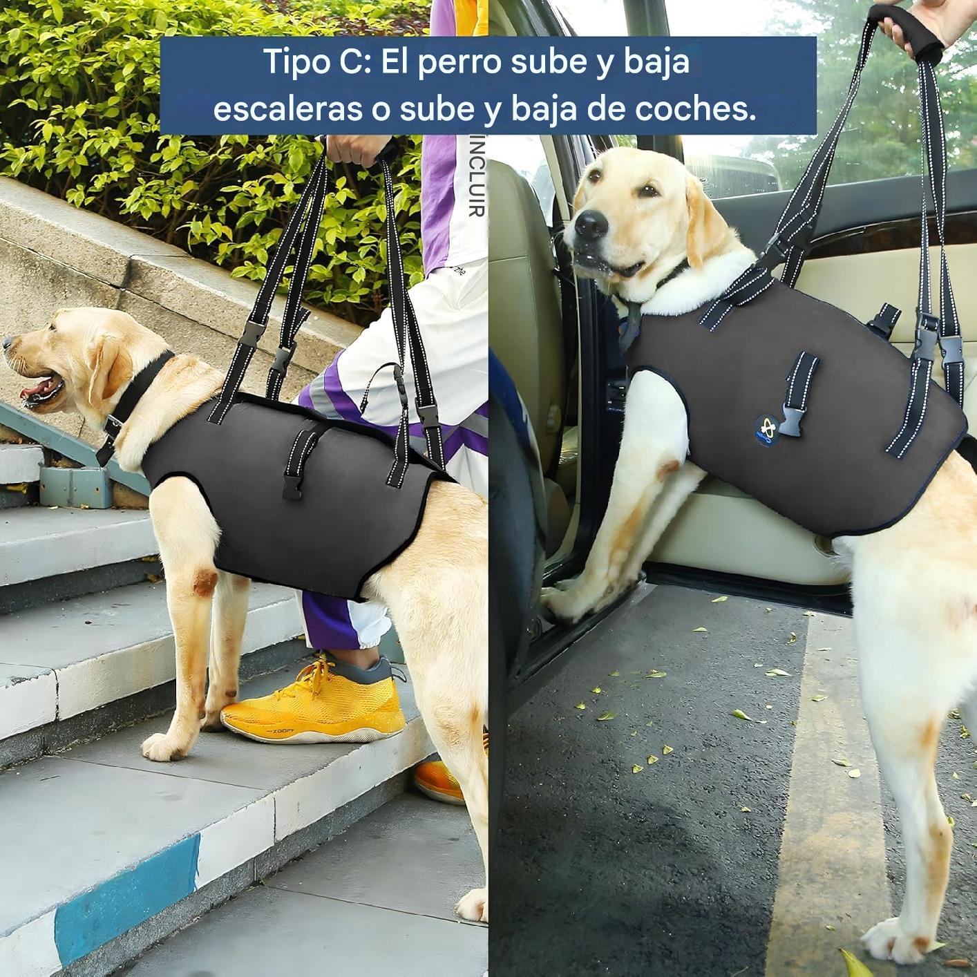 - 3. Fácil de usar: nuestro producto es fácil de usar en diseño y cuida bien la parte privada de los perros machos sin afectar su excreción normal, y ayuda al perro a subir y bajar escaleras sin resbalarse.