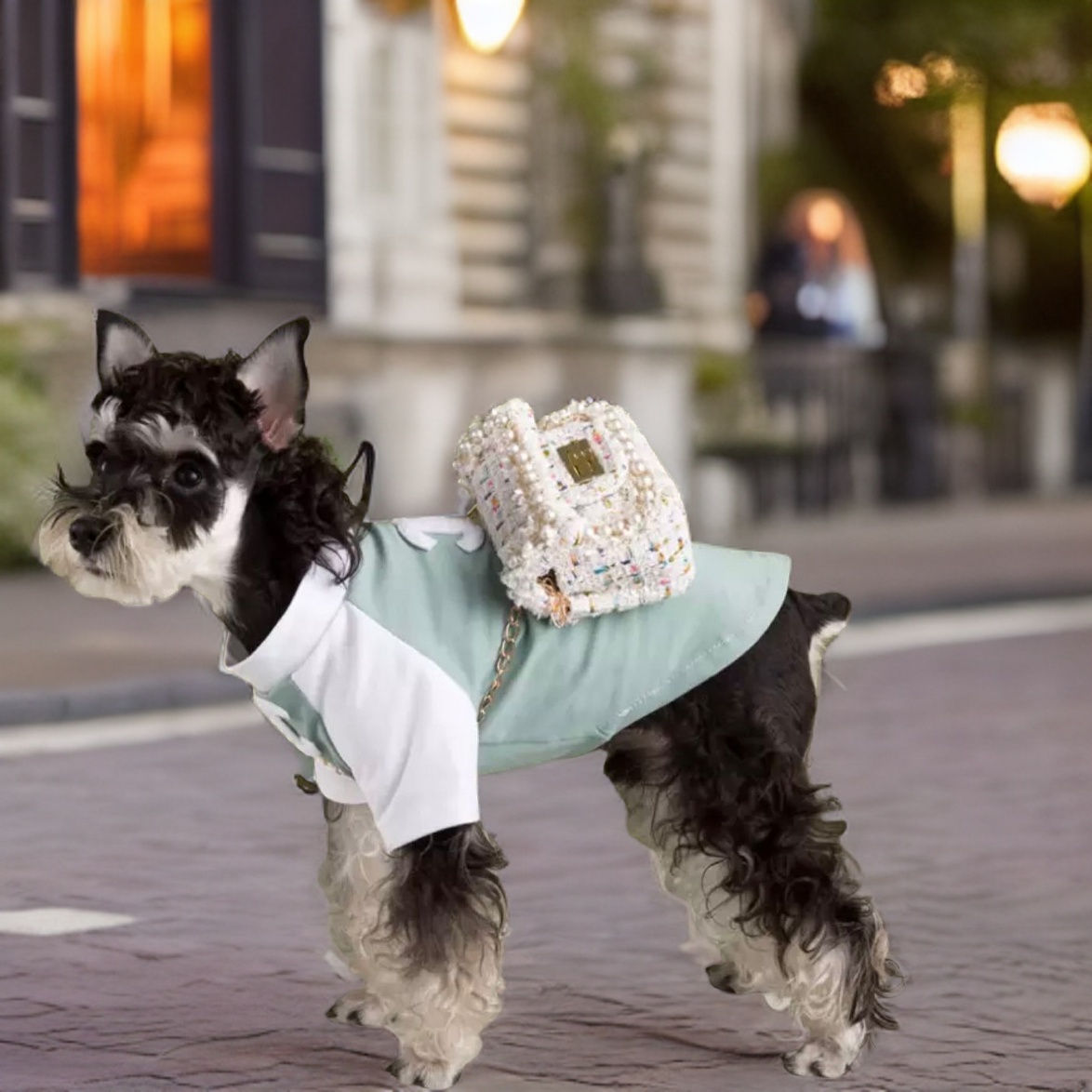 Fabricada con tweed de primera calidad y un diseño único, esta bolsa no solo permite a tu mascota transporta rsus accesorios como bolsas de desechos, premios y más, con la bolsa para mascota pet-a-porter, podrás disfrutar de paseos elegantes y funcionales junto a tu mejor amigo peludo.