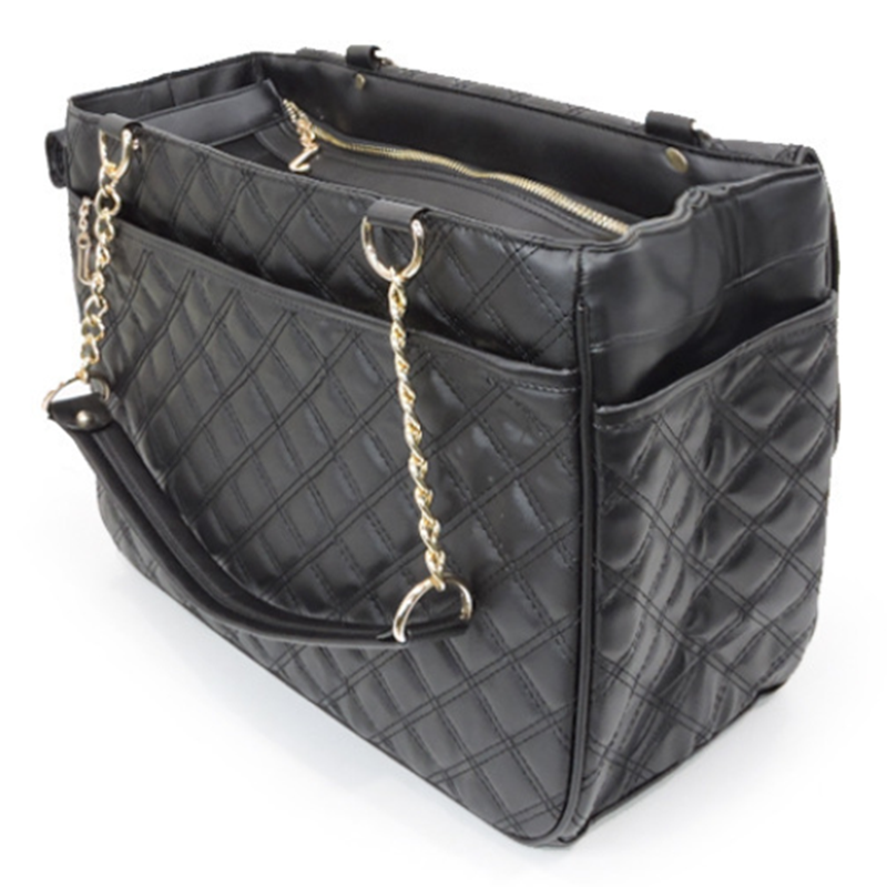 El bolso para transporte de mascotas negro está disponible en una variedad de tamaños para adaptarse a diferentes tamaños de mascotas.