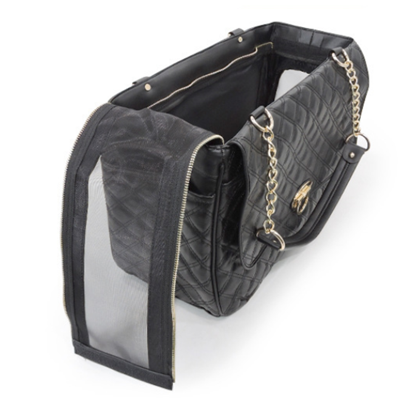 Aquí hay algunas de las características del bolso para transporte de mascotas negro: