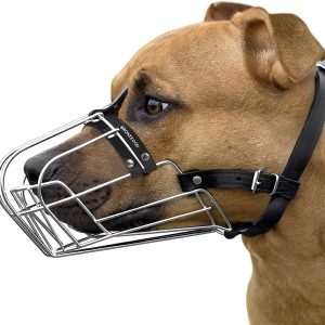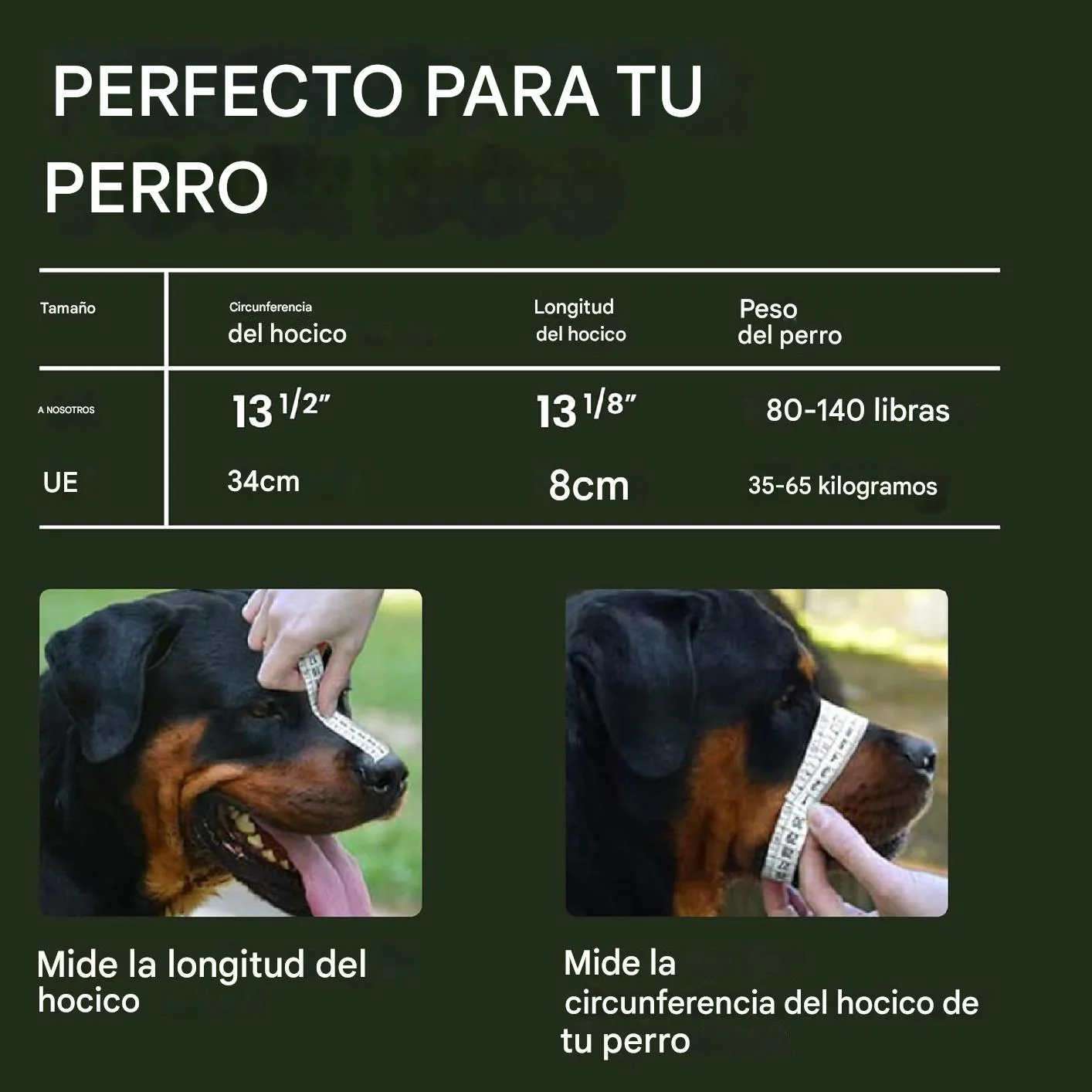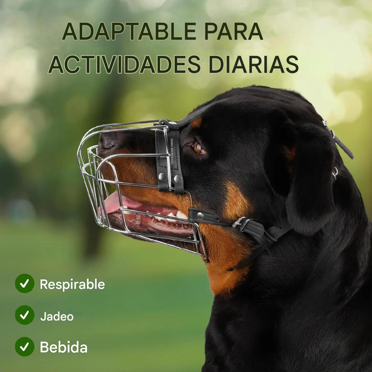 - Bozal grande premium para perros: fabricado con correas de cuero 100% genuino y una máscara de acero inoxidable duradera, nuestro bozal ajustable para perros cuenta con hebillas resistentes diseñadas para durar. Tamaño del hocico del perro: la circunferencia del hocico del perro es de 17 1/2 pulgadas, la longitud del hocico del perro es de 4 1/2 pulgadas. 4 correas de ajuste para un ajuste cómodo.