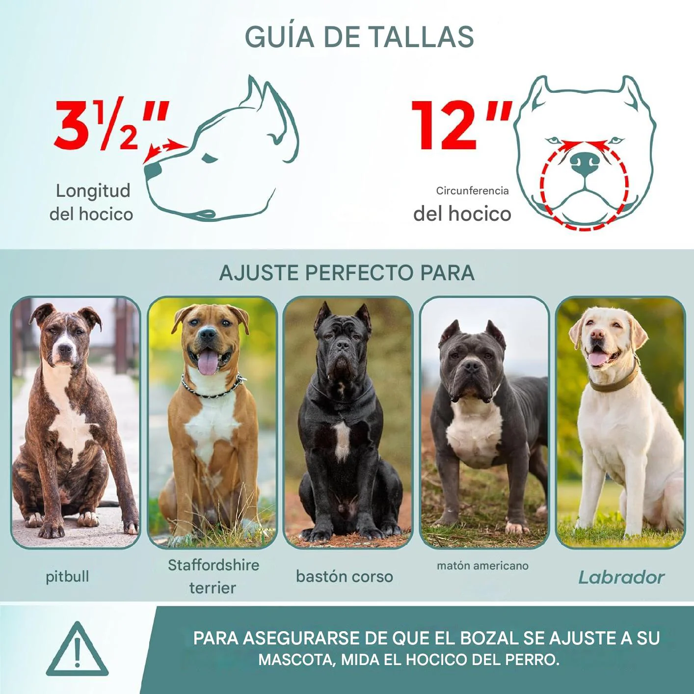 - Razas compatibles: nuestro bozal de canasta para perros está diseñado para adaptarse a Pitt Bull, Cane Corso, American Bully, Amstaff, Staffordshire Terrier, Pastor Alemán, Labrador, etc.