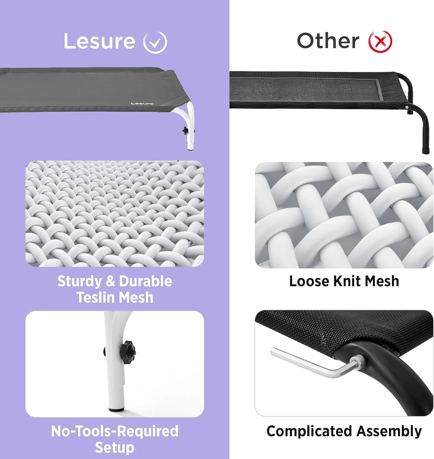 Con malla Teslin que reduce los puntos de presión articular y la tensión muscular, esta cama para mascotas lleva la comodidad al siguiente nivel. Las patas en forma de U y antideslizantes proporcionan estabilidad adicional para la seguridad de tu mascota