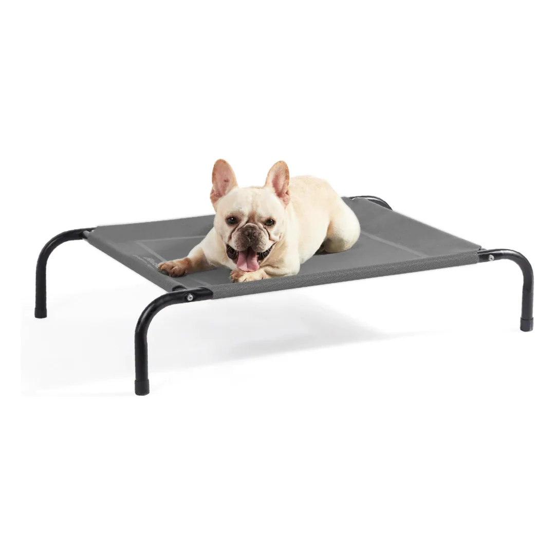 El diseño elevado de esta cama para perros aumenta el flujo de aire para comodidad durante todas las estaciones, manteniendo a tu mascota fresca incluso en días calurosos. La altura es perfecta para perros de todas las edades
