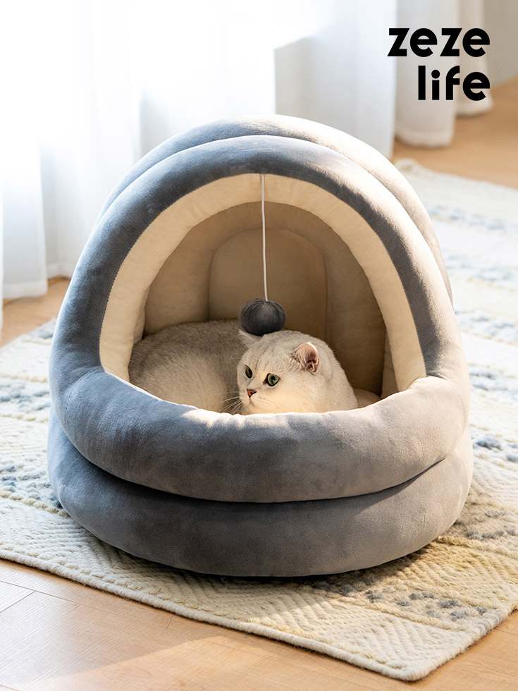 - New Waterproof Reflective Down Fabric – The cat cave bed use of reflective down jacket fabric is waterproof and moisture-proof, doubles heat storage, and better cares for cats sleeping in winter.