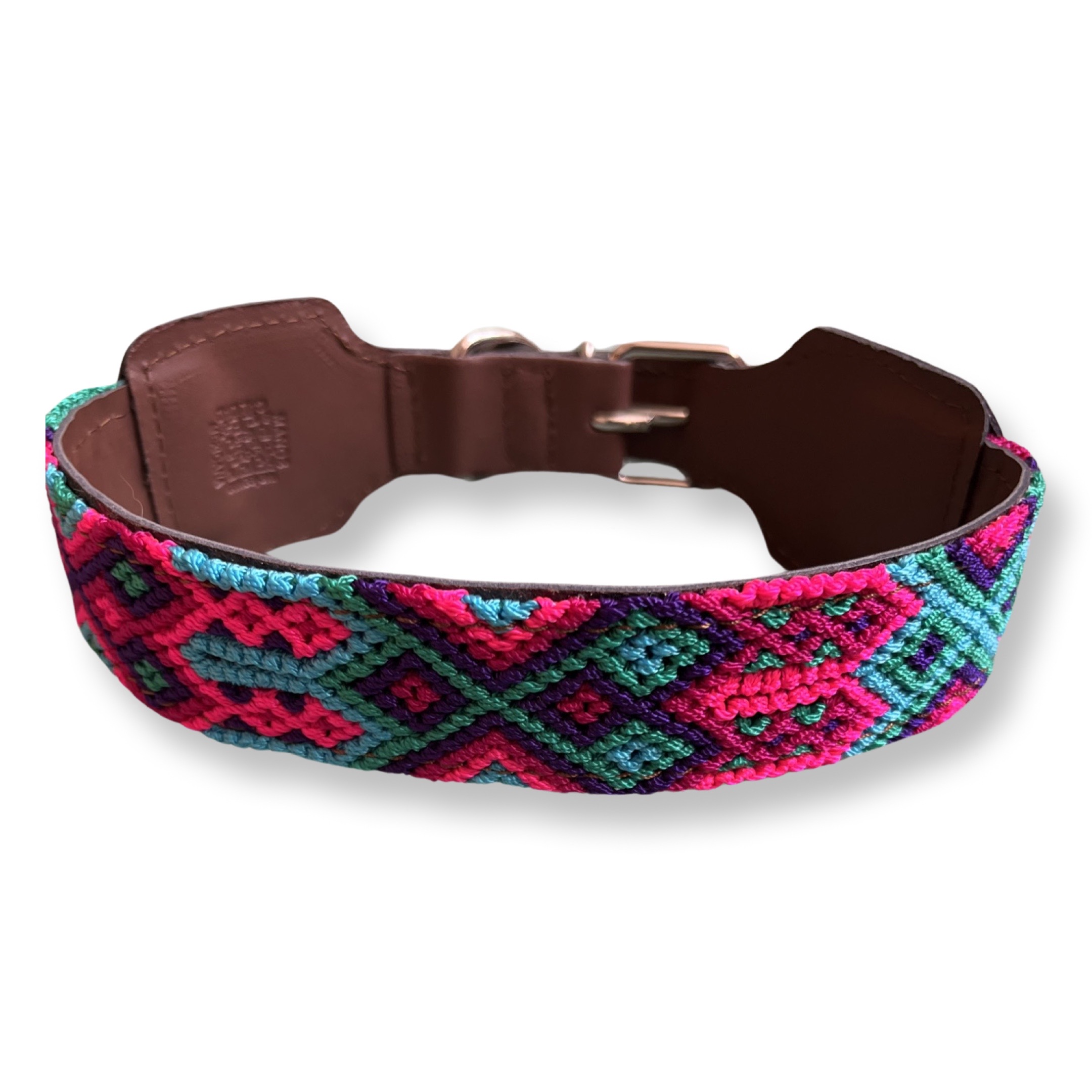 Nuestros tejidos son hechos a mano por artesanos de diferente regiones de México y ensamblados sobre piel sintética. Al comprar un collar ayudas a la economía mexicana generando empleos y promoviendo la belleza de la cultura de nuestro país
