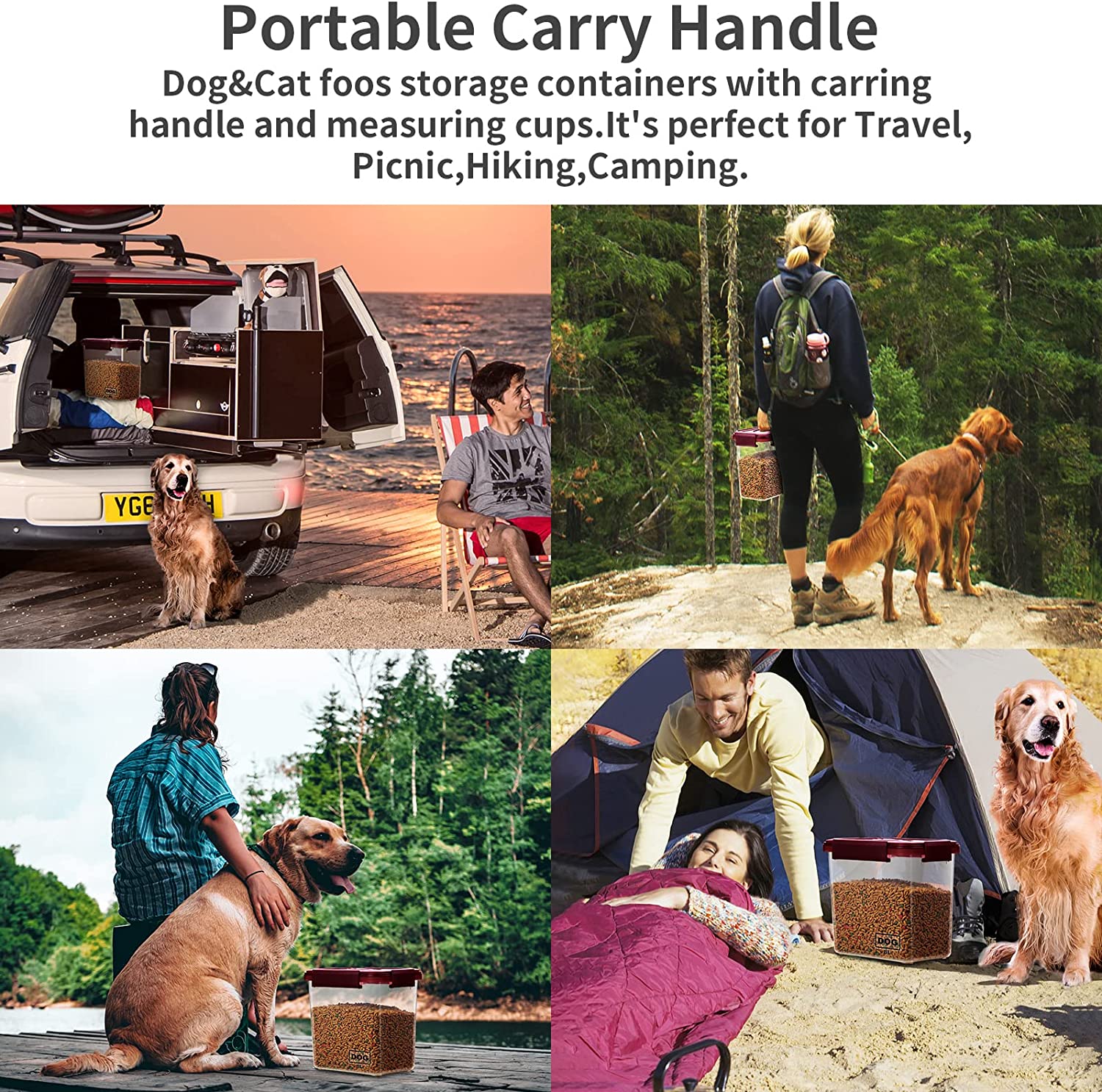 - Mango de transporte portátil con taza medidora: con el asa de transporte, este recipiente de comida para perros es perfecto cuando llevas a tu perro para viajar, picnic, senderismo o camping. El recipiente para alimentos para mascotas viene con 2 tazas medidoras, que pueden mantener fácilmente en la dieta estable de tus mascotas midiendo la misma cantidad.