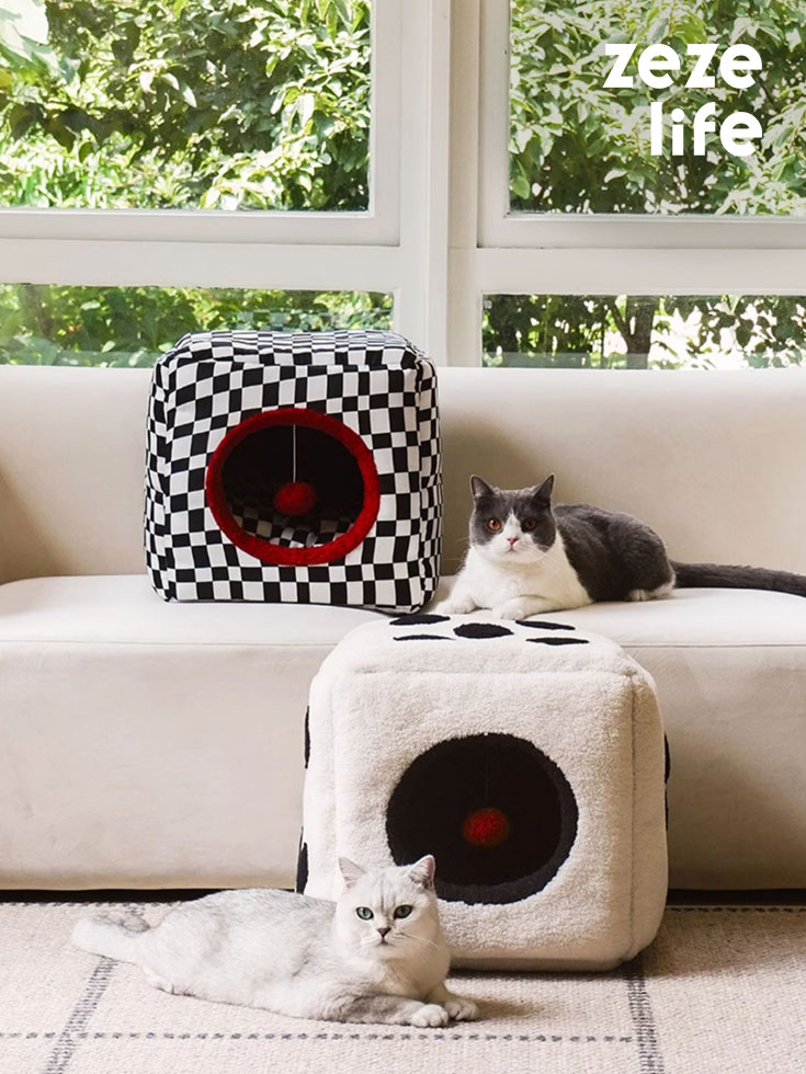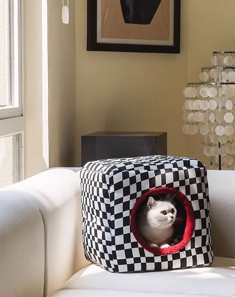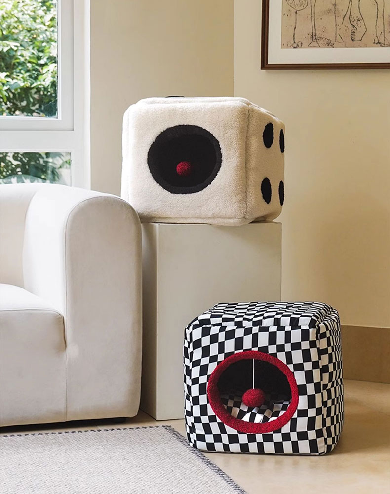 - Unique Design – The black & white checkered and dice design adds an adorable touch, making this cat bed not only a cozy shelter for your feline friend but also a stylish home decor piece for you.
