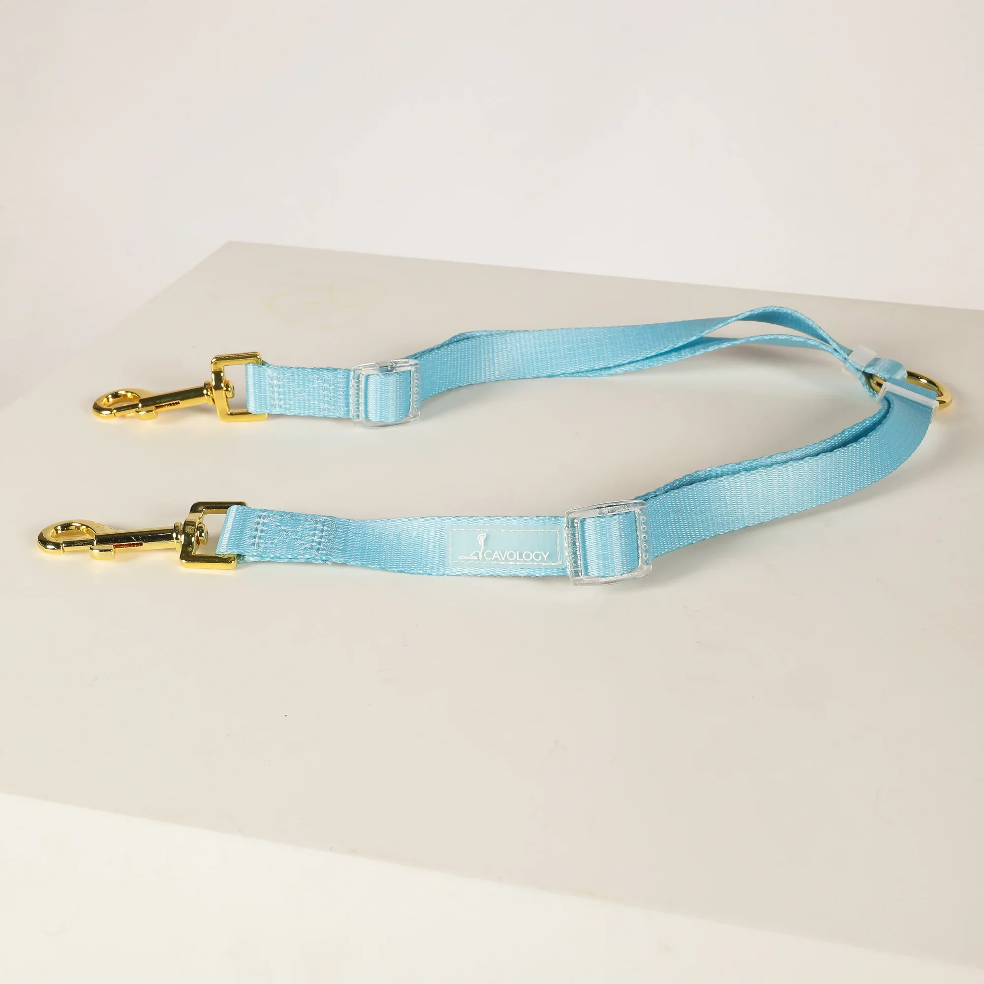 Acoplador de correas para pasear dos perros a la vez. Es ajustable y se puede utilizar en perros de diferentes tamaños.