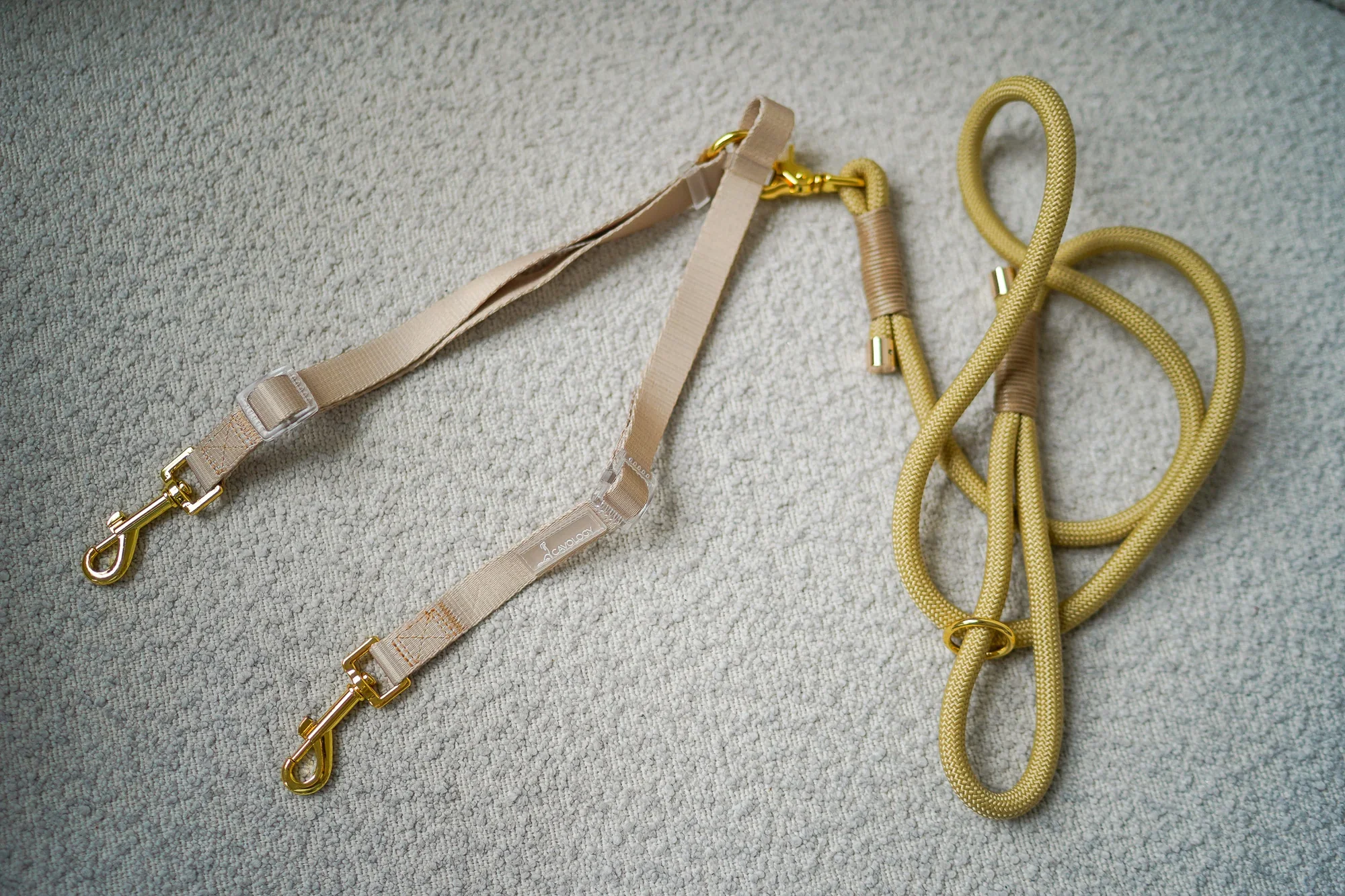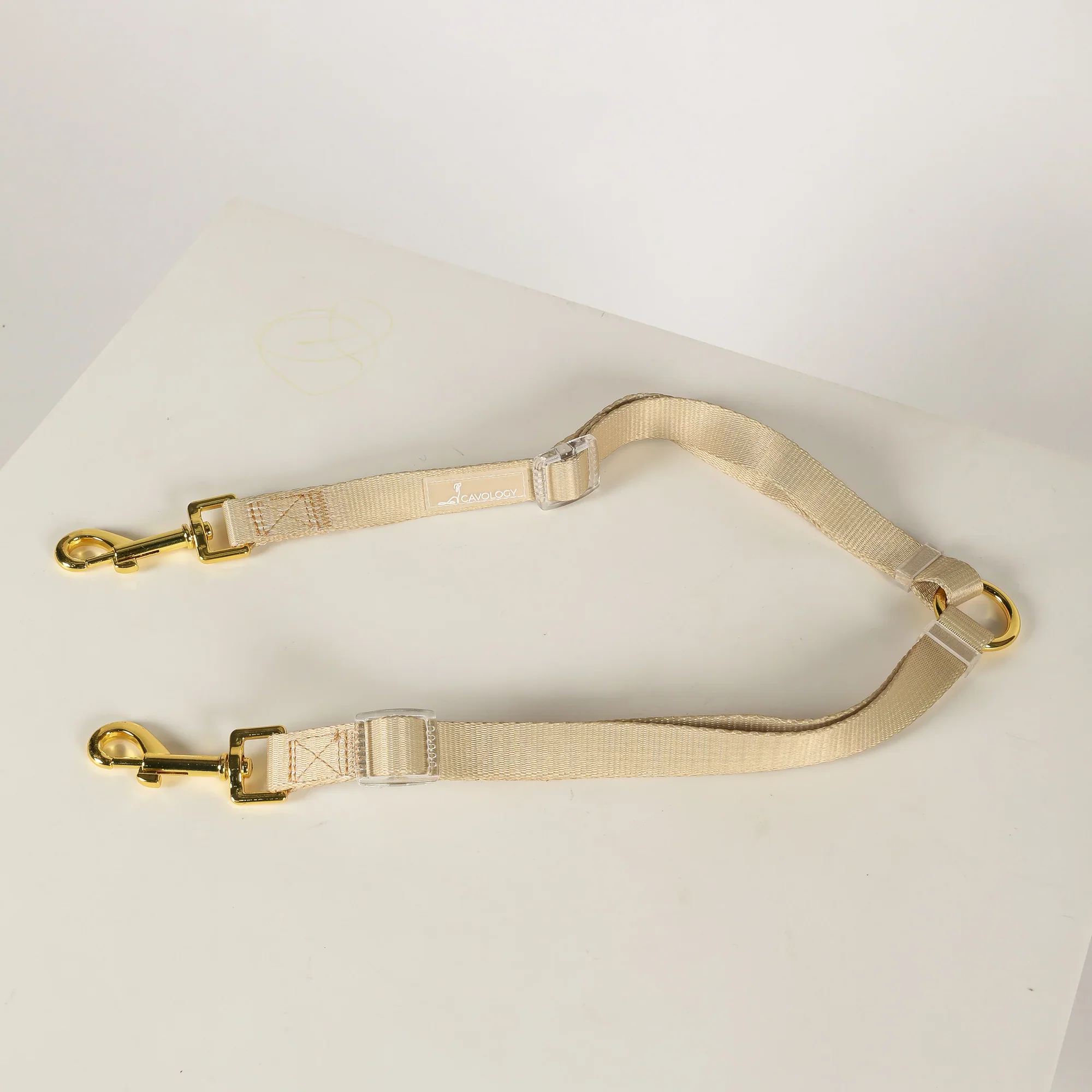 Acoplador de correas para pasear dos perros a la vez. Es ajustable y se puede utilizar en perros de diferentes tamaños.