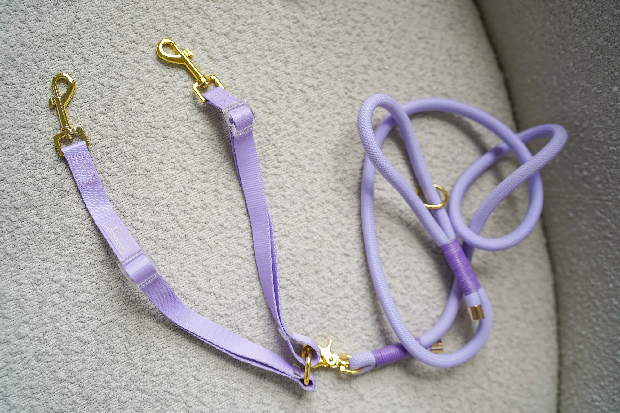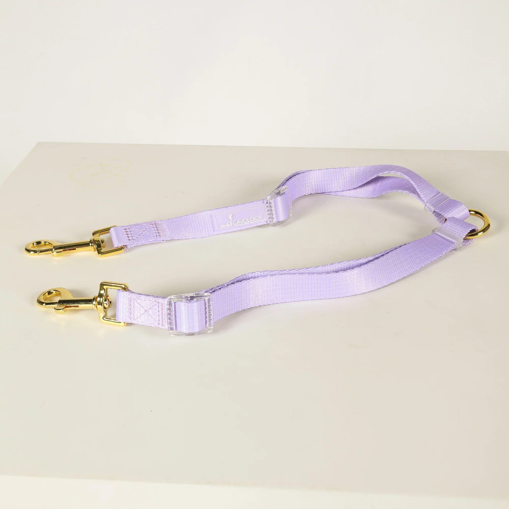 Acoplador de correas para pasear dos perros a la vez. Es ajustable y se puede utilizar en perros de diferentes tamaños.