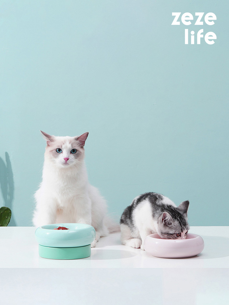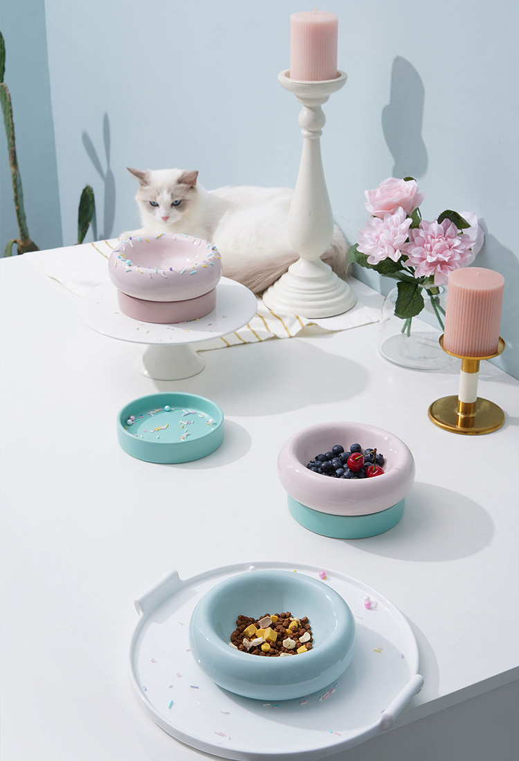It was time for sweet treats for Coco and Mocha, two curious kittens. Their owner Rachel grabbed their favorite macaron-colored double layer ceramic cat bowls – a pink for Coco and blue for Mocha. As the kittens crunched their treats, their noses twitching at the tasty smells, Rachel chuckled at their contrasting coats matching the bowls perfectly. Once the food was gone, Coco pawed at her pink bowl while Mocha batted around the blue one. The food and colors engaged their playful spirits on this sunny afternoon. Rachel was glad she chose these adorable ceramic cat bowls to brighten mealtimes for her multicolored duo.