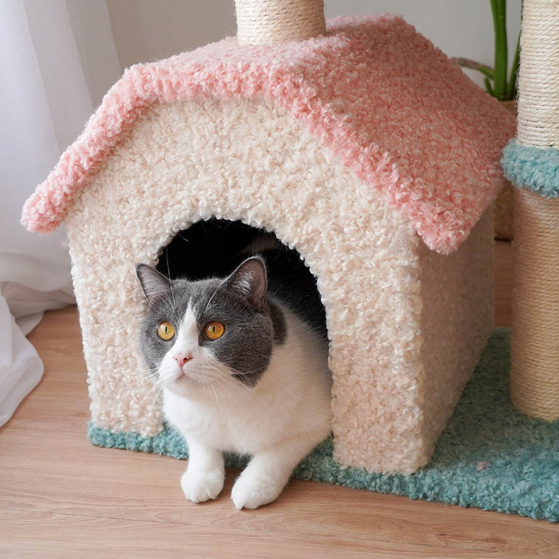 - Private Resting Space – The cat tree features a house-like cat apartment at the bottom, providing cats with an independent and quiet resting space.