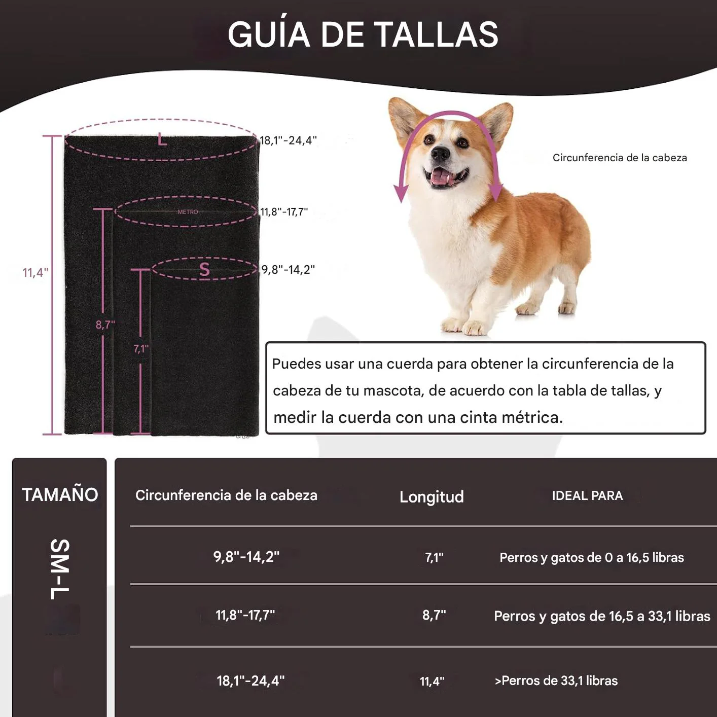 - Adecuado para la mayoría de perros y gatos: 3 tamaños para la mayoría de razas de perros y gatos. Elige el tamaño adecuado para tu perro o gato grande, mediano o pequeño. Mide cuidadosamente la circunferencia de la cabeza de tu perro o gato antes de comprar. Las pautas de medición se muestran en la tabla de tallas para proporcionar la compañía más cómoda para tu mascota