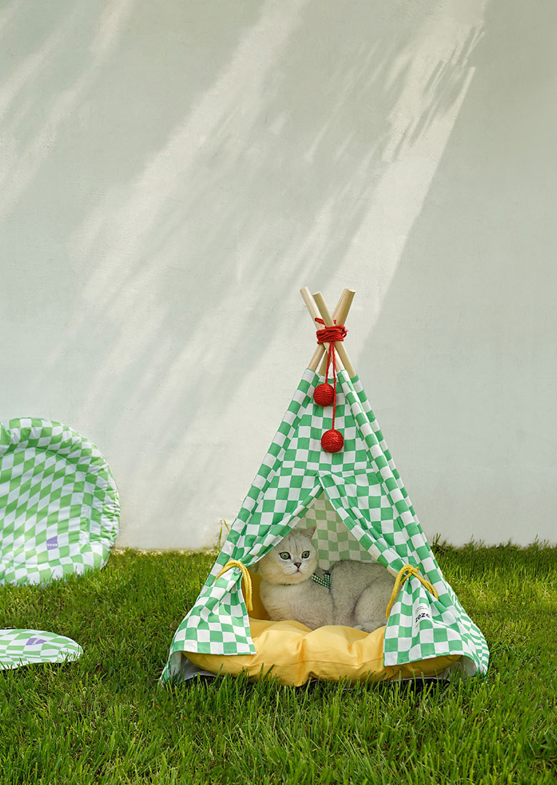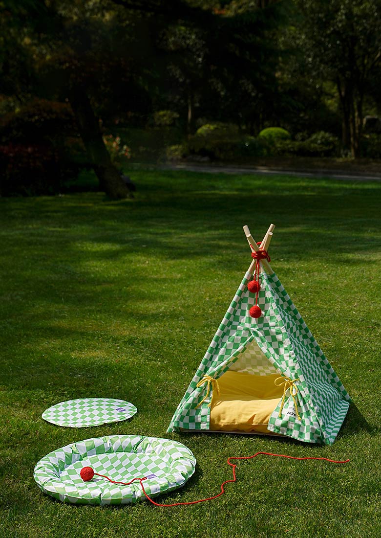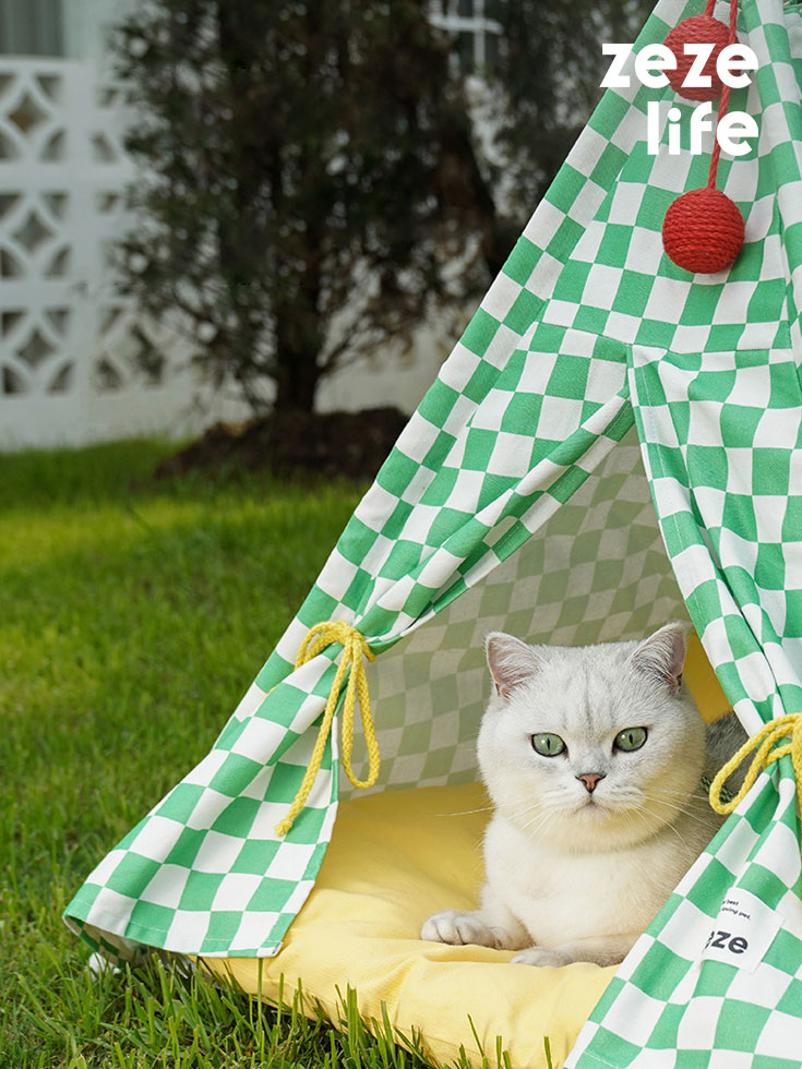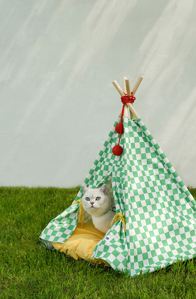 Green Lattice Cat Teepee Bed