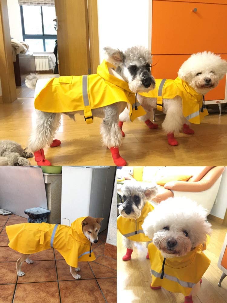 - El chubasquero para perro puede ayudar a que tus mascotas se mantengan secas y cómodas al aire libre o en condiciones húmedas. El diseño del agujero: puedes pasear a tu perro con una correa incluso en los días lluviosos.