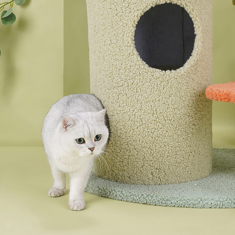 - The cashmere-like carpet is made of insect-proof and anti-bacterial fiber material. Vacuum clean the forest cat tower surface hairs, or wipe gently with a damp towel.