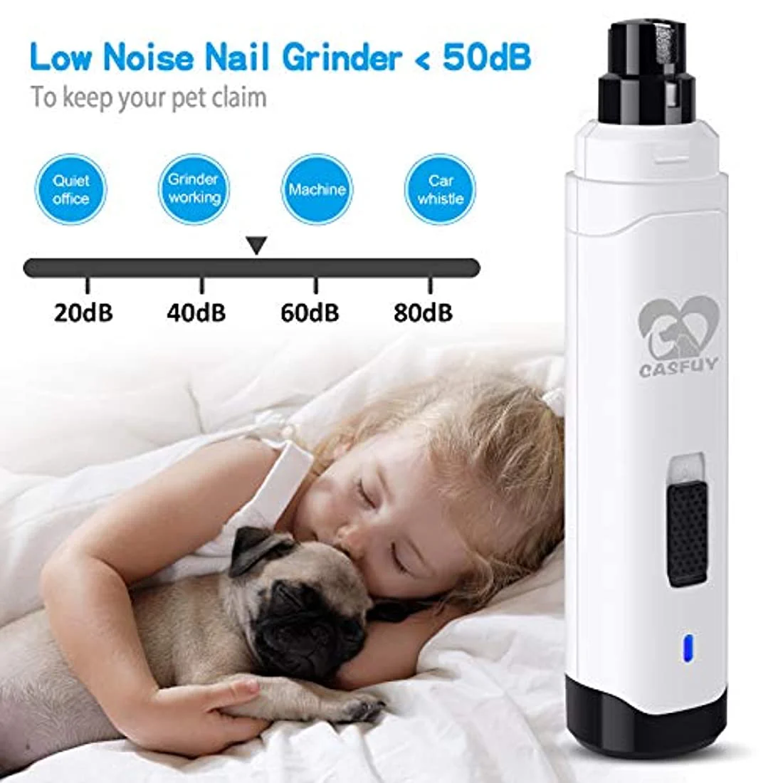Ruido y vibración muy bajos: Muchas mascotas se estresan con el sonido y la vibración de la lima de uñas para mascotas. Sin embargo, nuestra lima de uñas eléctrica para mascotas utiliza un motor superior con tecnología silenciosa que produce una vibración muy baja para mantener a las mascotas tranquilas y ayudar a limar las garras de mascotas más rápido y más fácil.
