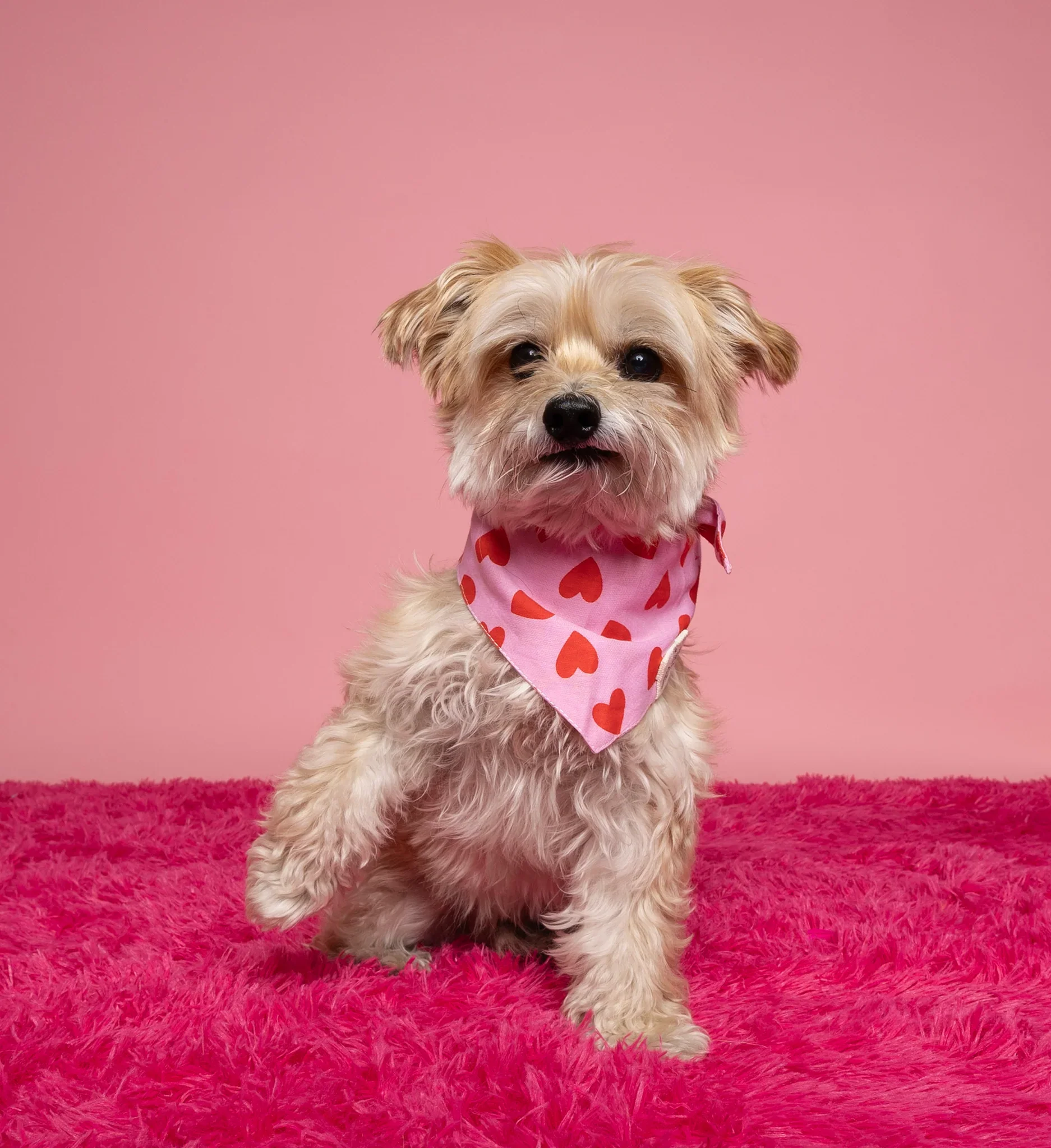 Lovesong: corazones de amor esparcidos sobre algodón rosa