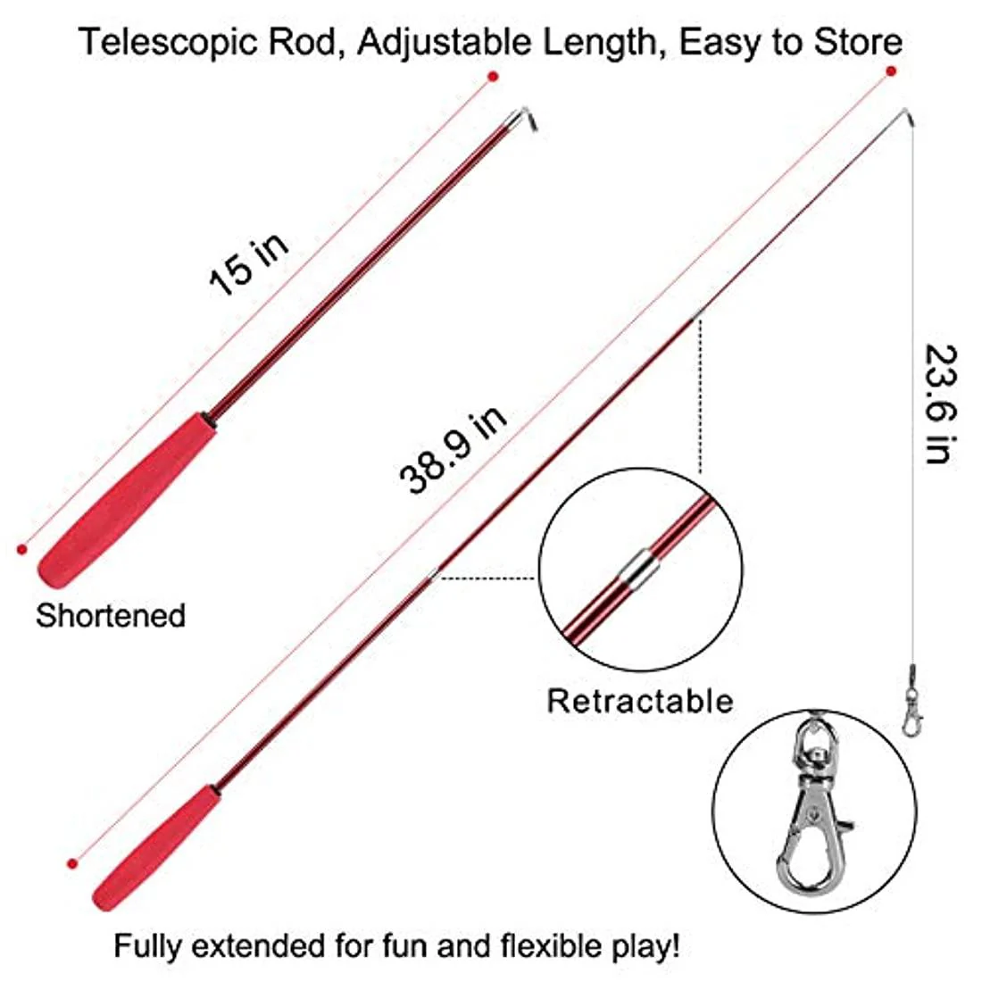 1. La varita de gato es telescópica, retraída a 38 pulgadas para almacenar fácilmente el juguete, extendida a 35.8