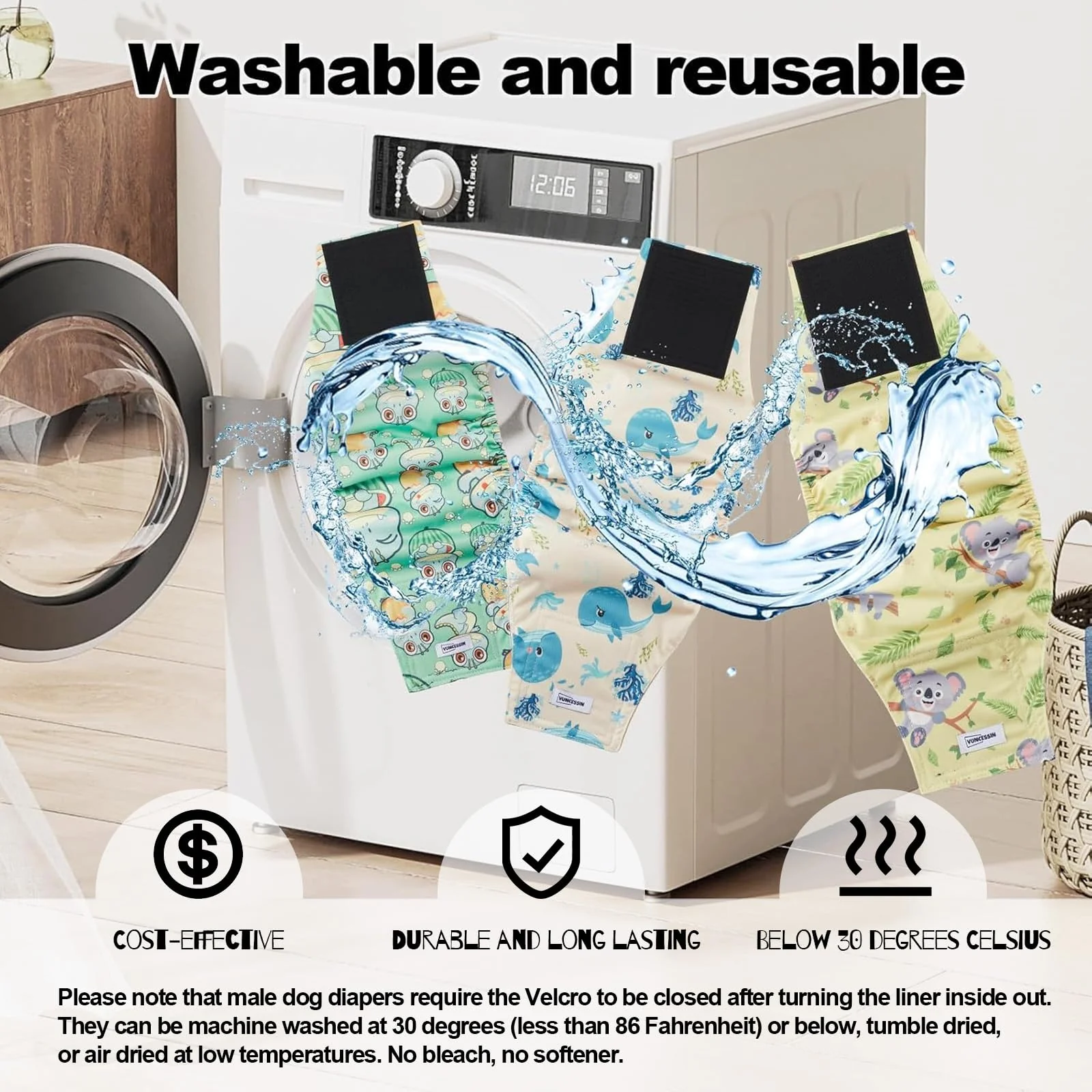 - Duradero y frugal: las envolturas de pañales para perros están diseñadas para mayor durabilidad con costuras de precisión para soportar el uso diario y el lavado frecuente. Los pañales para perros para machos son lavables a máquina a 30 grados menos de 86 Fahrenheit) o menos, secar en secadora o secar al aire a bajas temperaturas. No usar blanqueador, sin suavizante.