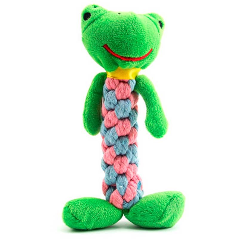 Peluches de juguete para perros Rana. Peluche de textura suave con cuerpo de cuerda que hará que tu perro se divierta mordiéndolo con esta simpática rana.