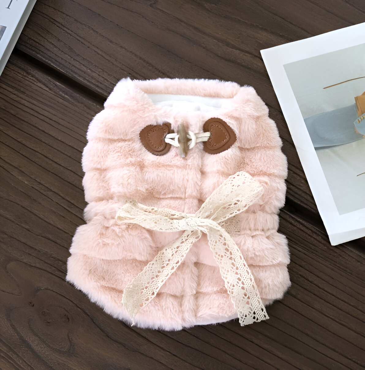 Este chaleco es perfecto para cualquier ocasión. Puedes usarlo para pasear a tu mascota, para ir al parque o para una ocasión especial. ¡Haz que tu mascota se vea y se sienta adorable con este chaleco afelpado y con encaje!
