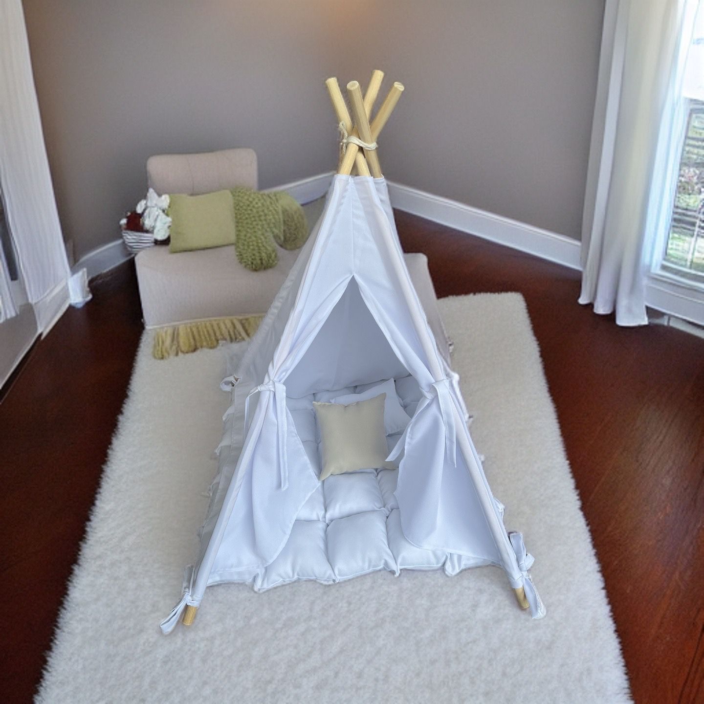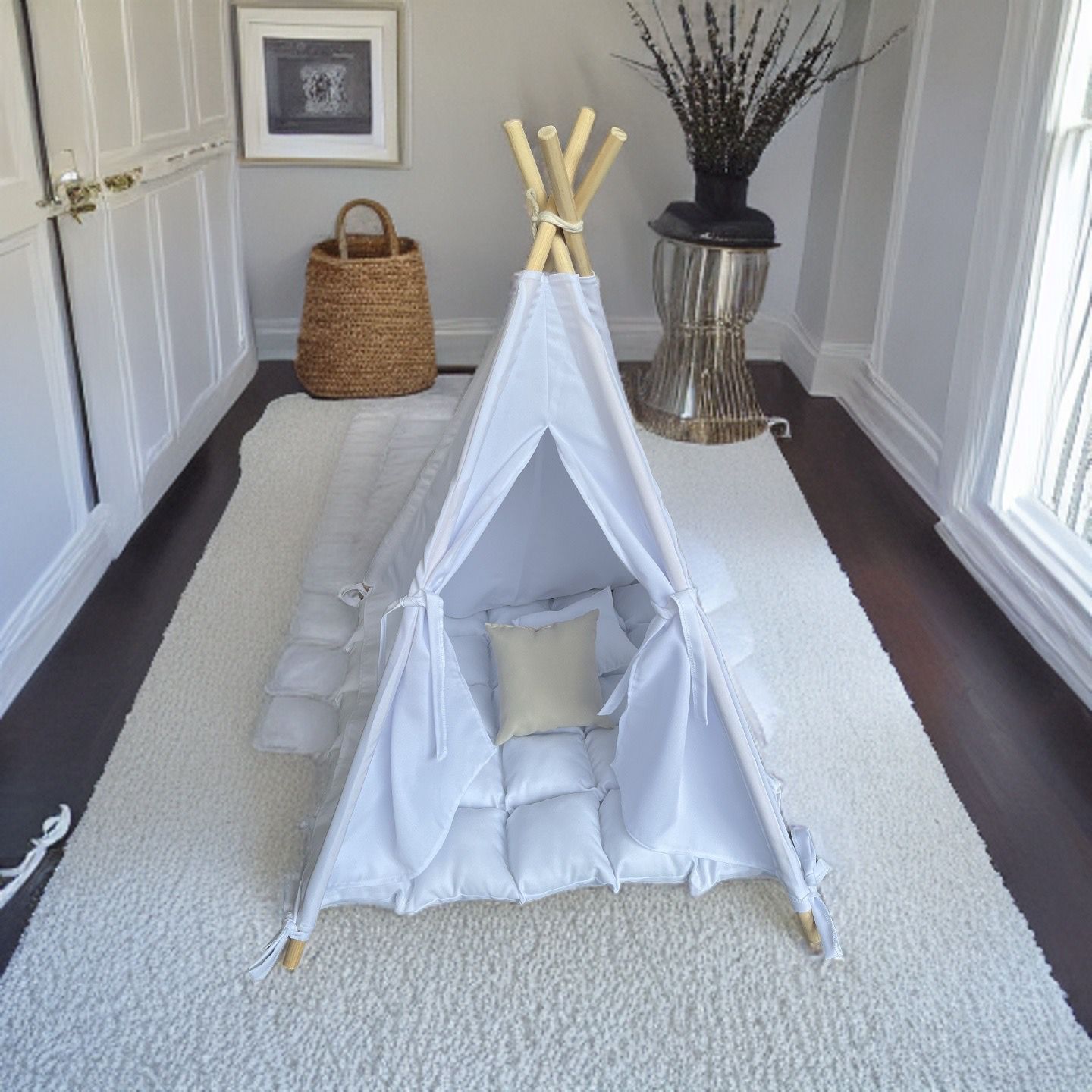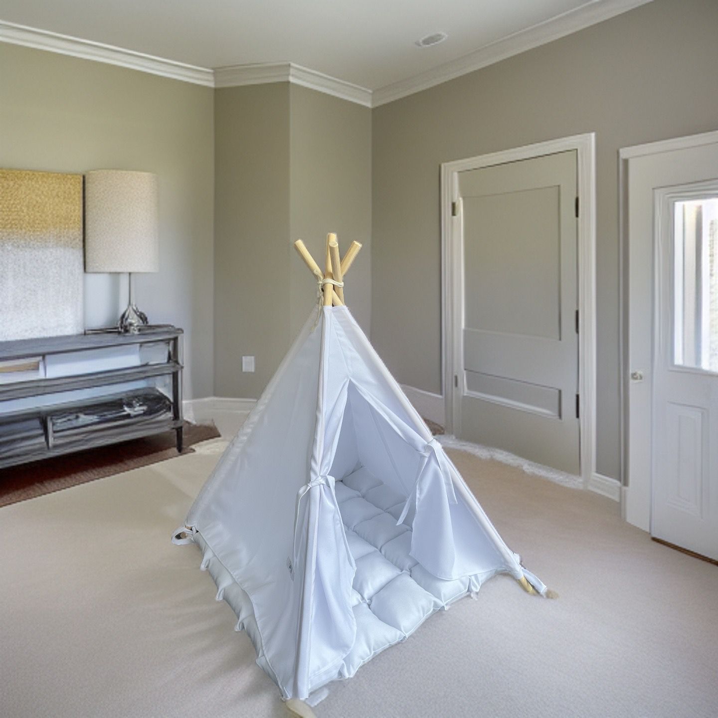 Nuestros Tepees para mascotas son el lugar perfecto para que tu mascota se sienta segura y cómoda. Están hechos con materiales durables que pueden soportar el desgaste diario, y están disponibles en una variedad de tamaños para adaptarse a cualquier mascota. También vienen con una variedad de características, como una puerta, una ventana y un techo acolchado, para que tu mascota pueda relajarse y divertirse en su propio espacio personal.Además de ser cómodos y seguros, nuestros Tepees para mascotas también son muy elegantes. Están disponibles en una variedad de diseños únicos, por lo que puedes encontrar el perfecto para complementar la decoración de tu hogar. ¡Tu mascota los amará!Si estás buscando el lugar perfecto para que tu mascota descanse, juegue y se sienta como en casa, entonces nuestros Tepees de lujo para mascotas son la opción perfecta para ti. ¡Ordena el tuyo hoy!”Aquí hay algunos beneficios adicionales de comprar un tipi de lujo para mascotas:Hecho con materiales de alta calidad que son duraderos y fáciles de limpiar.Disponible en una variedad de tamaños para adaptarse a cualquier mascota.Viene con una variedad de características, como una puerta, una ventana y un techo acolchado.Fácil de montar y desmontar.Un gran regalo para cualquier amante de las mascotas.
