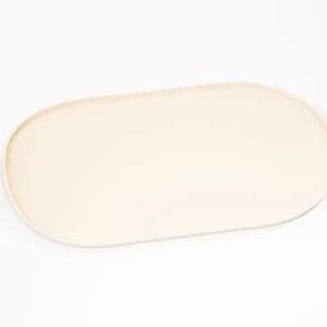 El borde alto de este mat mantiene los alimentos y el agua dentro y evita derrames en el suelo