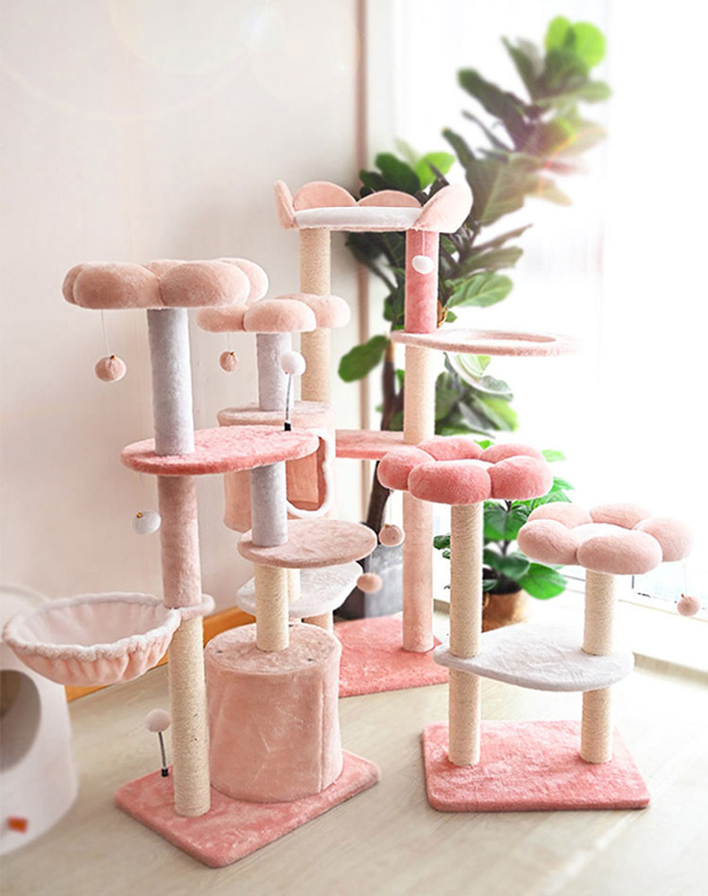 Meow, follow ZezeLife: Pink Cat Tree, Flower Cat Tree, Tall Cat Tree, Wooden Cat Tree, Mushroom Cat Tree