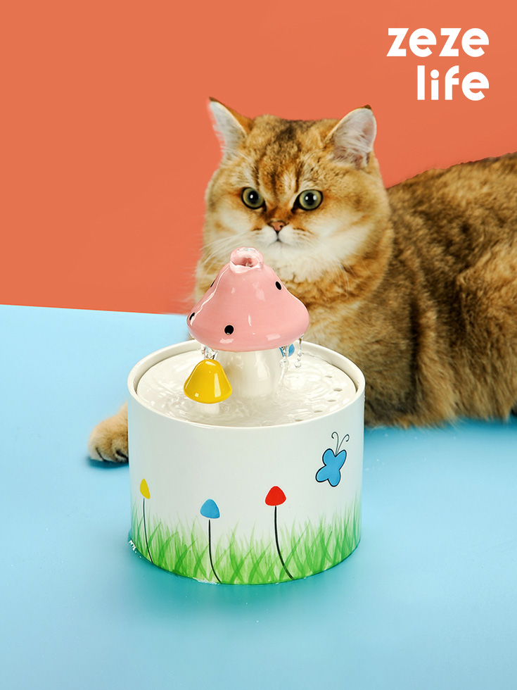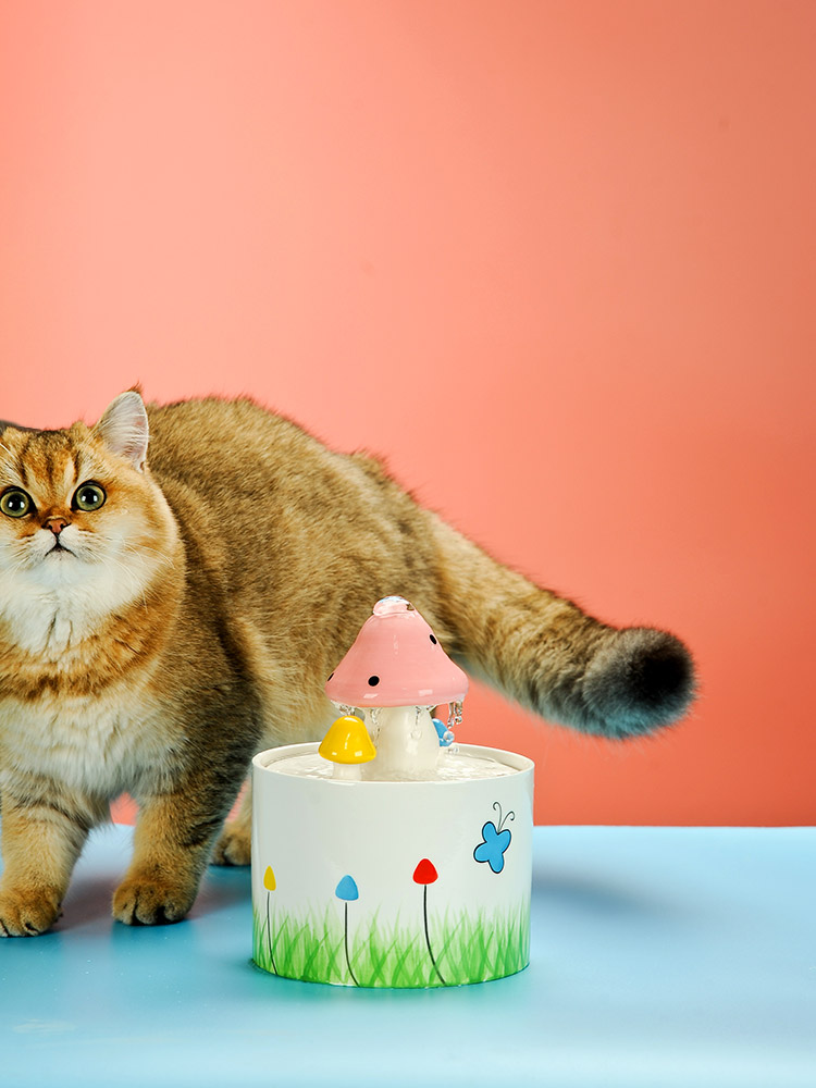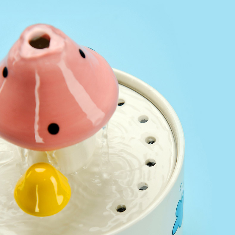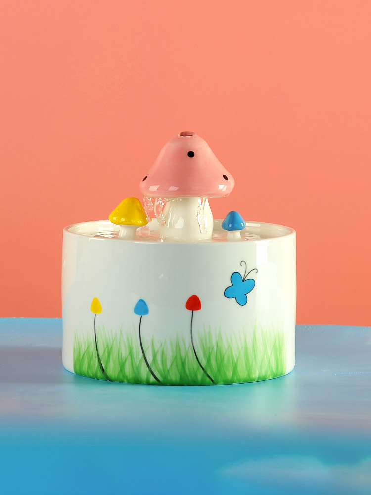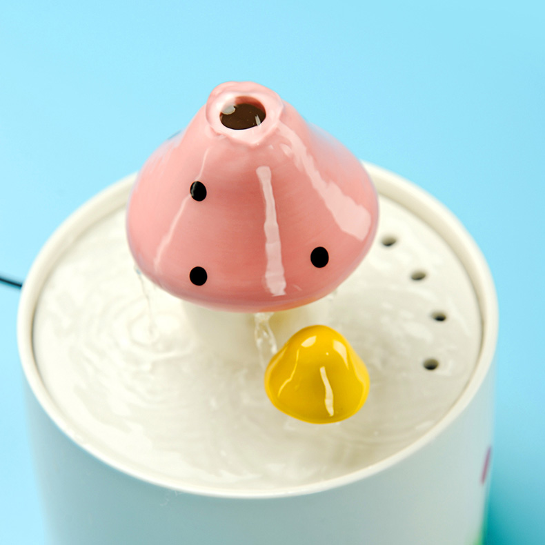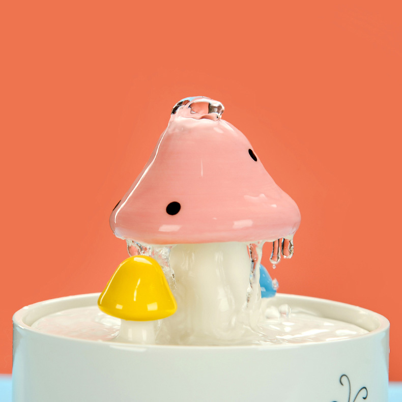 This pink mushroom cat water fountain provides a source of clean running water and encourages pets to drink—which can play an important role in long-term health, especially for you loving cats!