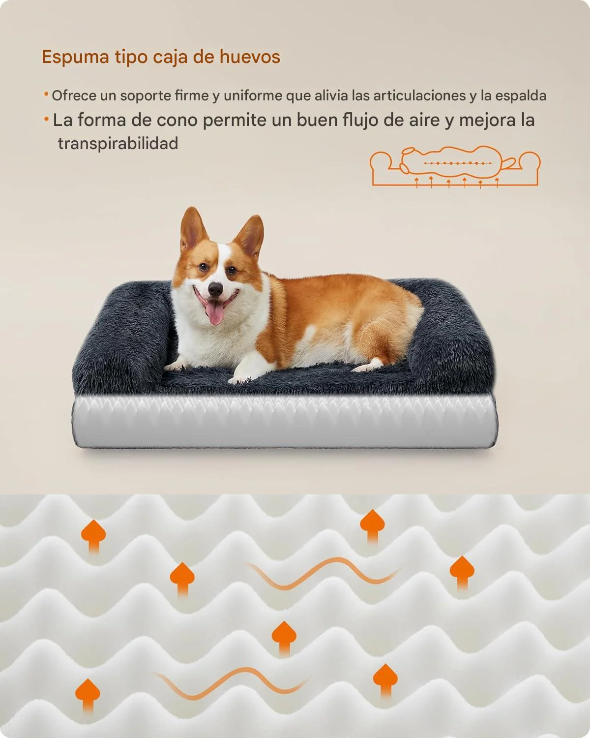 - [Acolchado de apoyo, articulaciones relajantes] Acolchado con espuma de jaula de huevos, la cama para perro proporciona un apoyo firme y uniforme y mejora el flujo de aire y la transpirabilidad. Alivia eficazmente la presión sobre la columna vertebral y las articulaciones, por lo que es ideal para perros ancianos con dolor en las articulaciones