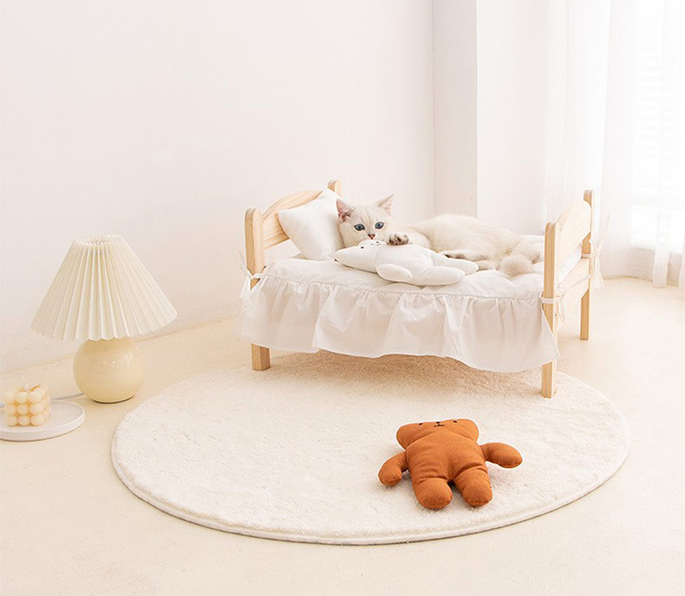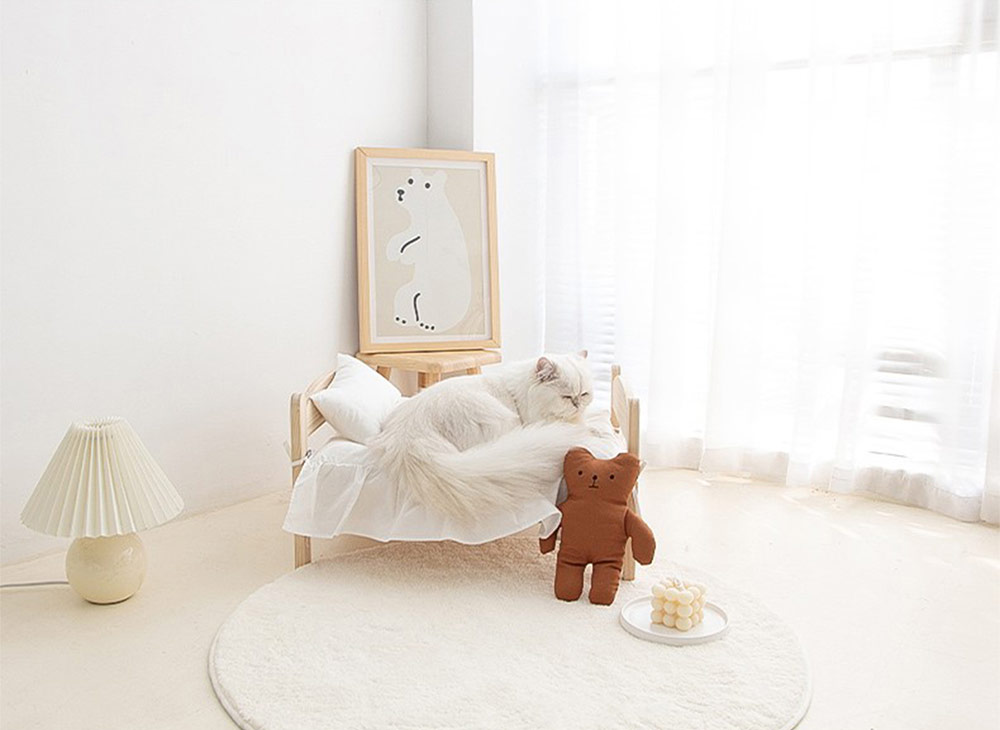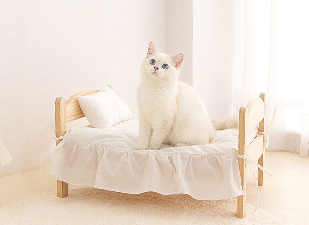 Adults have adults’ beds, children have children’s beds, and kittens want to have their own wooden cat bed.