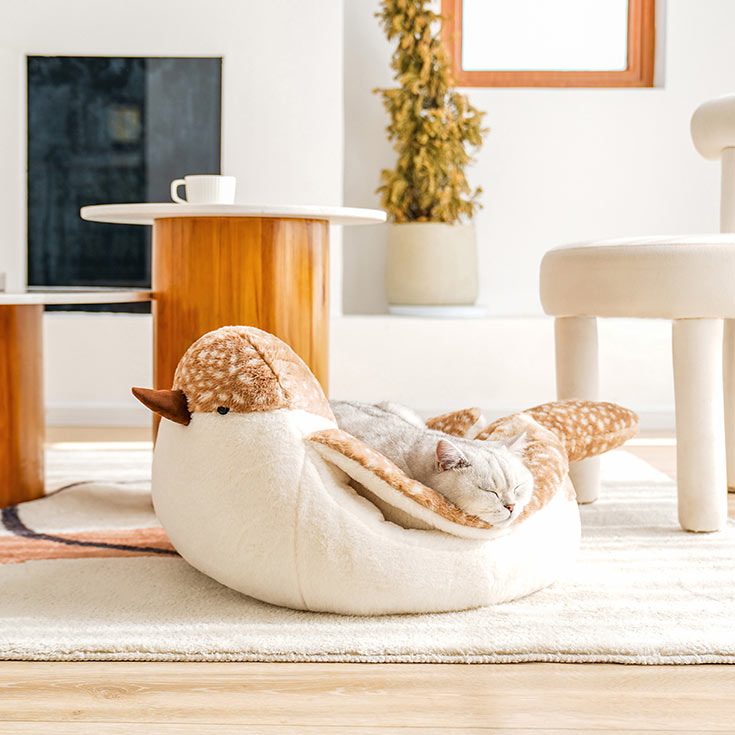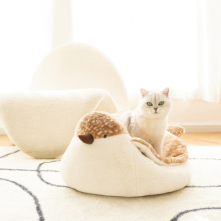 The warm sun shines into the house, the warm wind blows on the cat’s face, and the little sparrow carries the cat to stop and rest; The soft and comfortable bunny fur gives the cat a deep feeling; The Big full interior fills the cat with a comfortable experience.