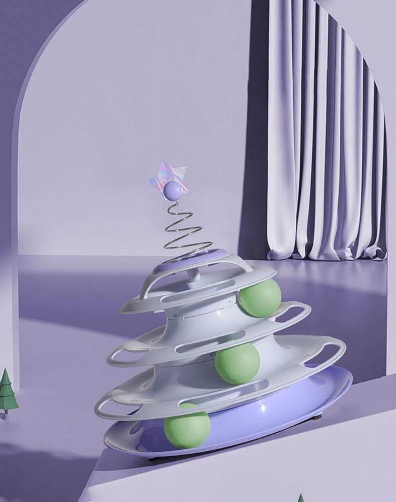 - Four-Tier Design – The multi-level design of this spinner cat toy adds an extra layer of fun, promoting an active movement of the cat’s limbs and alleviating boredom.