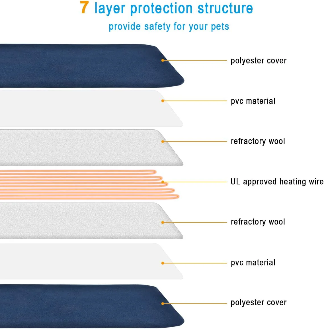 - Estructura segura y compacta: estructura de protección de 7 capas con alambre de calefacción aprobado por UL que evitará que tu mascota se queme. Con sensor de temperatura en el interior de la alfombrilla de calentamiento puede evitar el sobrecalentamiento para proteger a tus mascotas