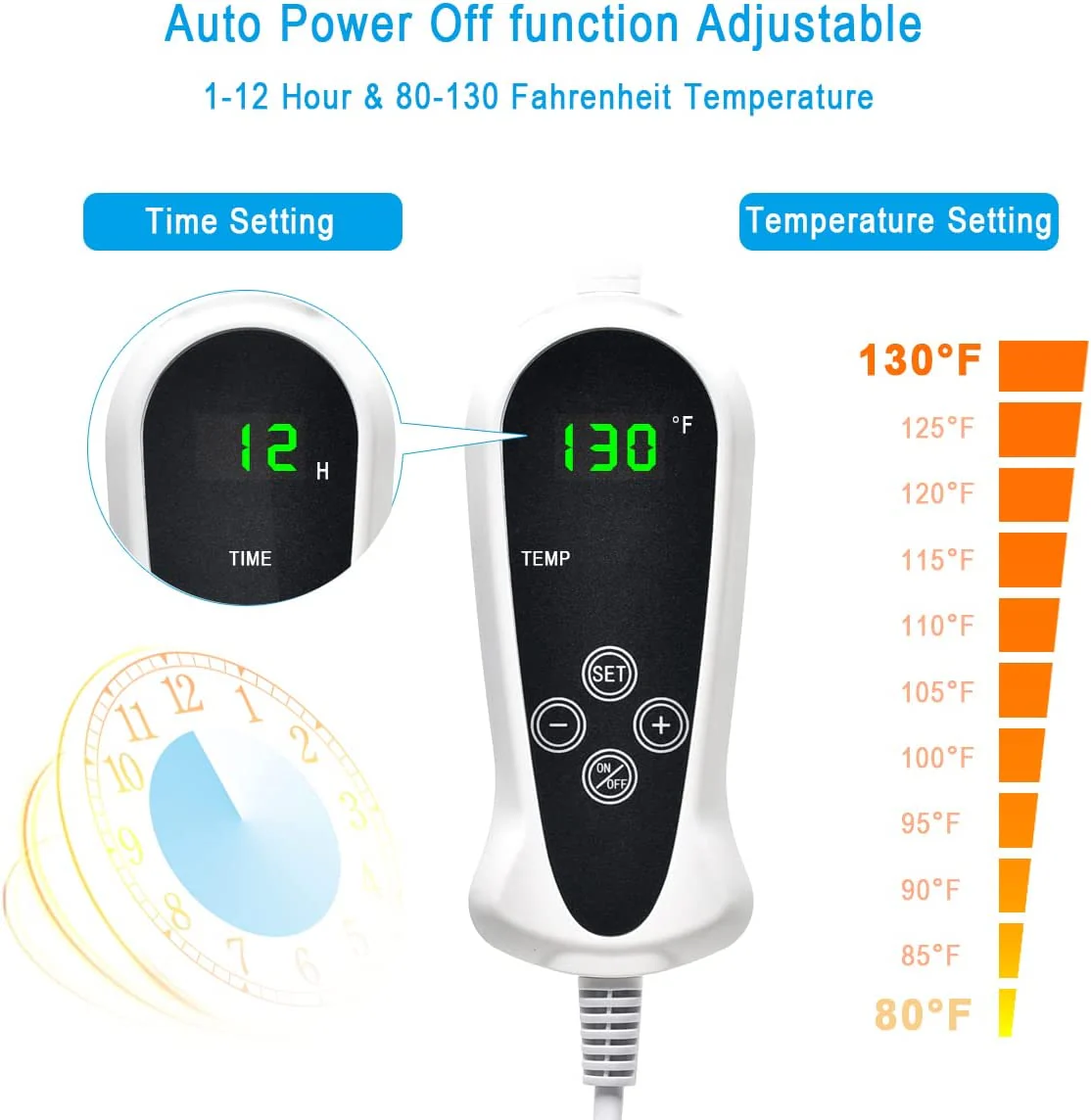 - Función de apagado automático Almohadilla de calefacción para mascotas: ajuste de tiempo de 1 a 12 horas La almohadilla de calefacción se apagará cuando olvides apagar el interruptor