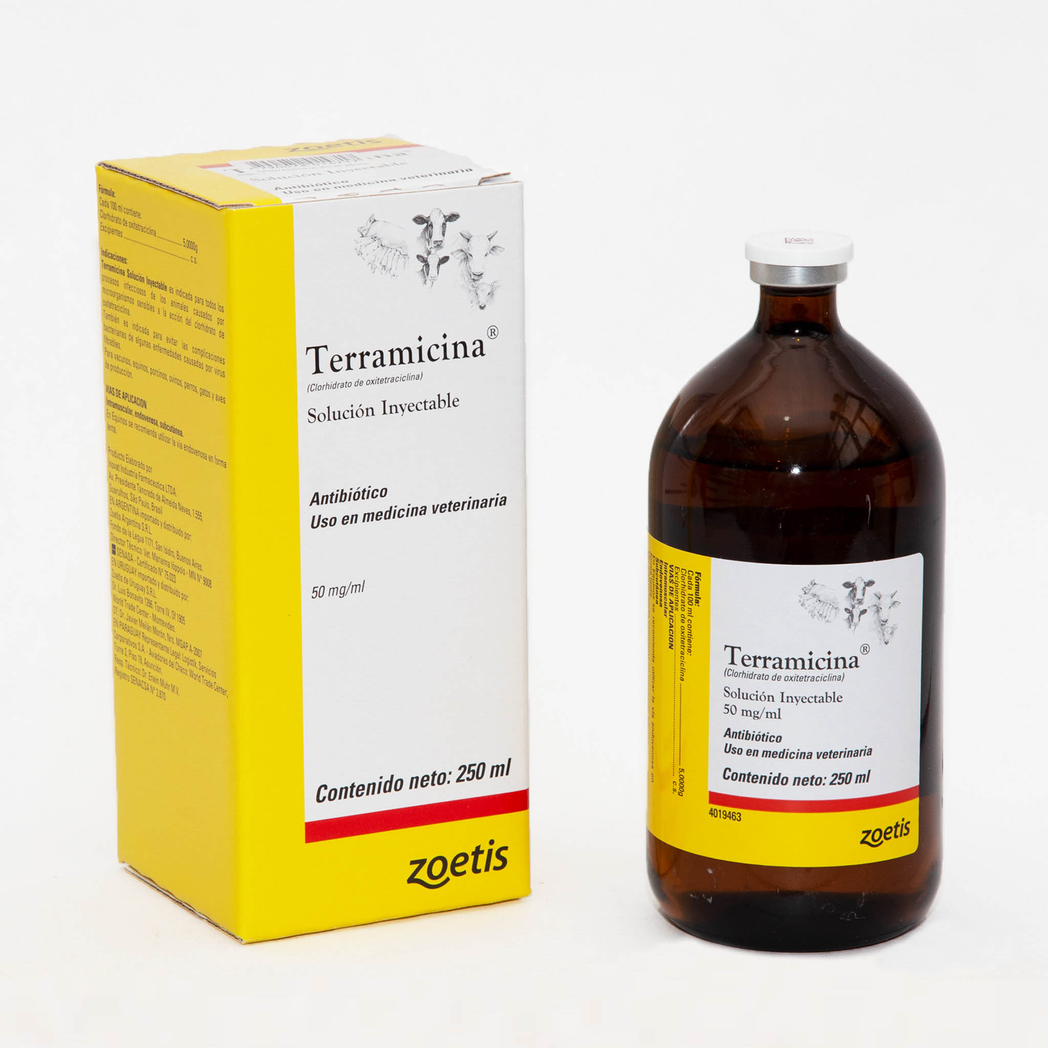 Solución de Clorhidrato de Oxitetraciclina en Propilenglicol, perfectamente estéril y estable, lista para usar. Terramicina es la marca de fábrica para la Oxitetraciclina, un antibiótico de amplio espectro, eficaz contra bacterias, Mycoplasmas y protozoos de importancia en Medicina veterinaria.