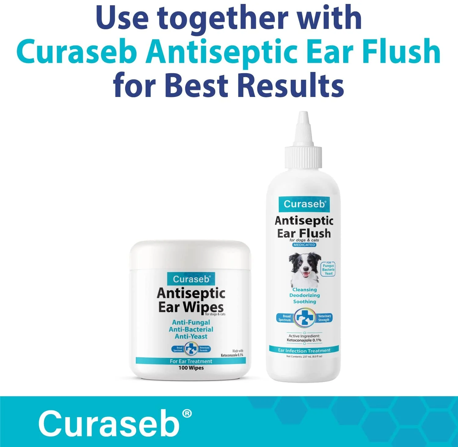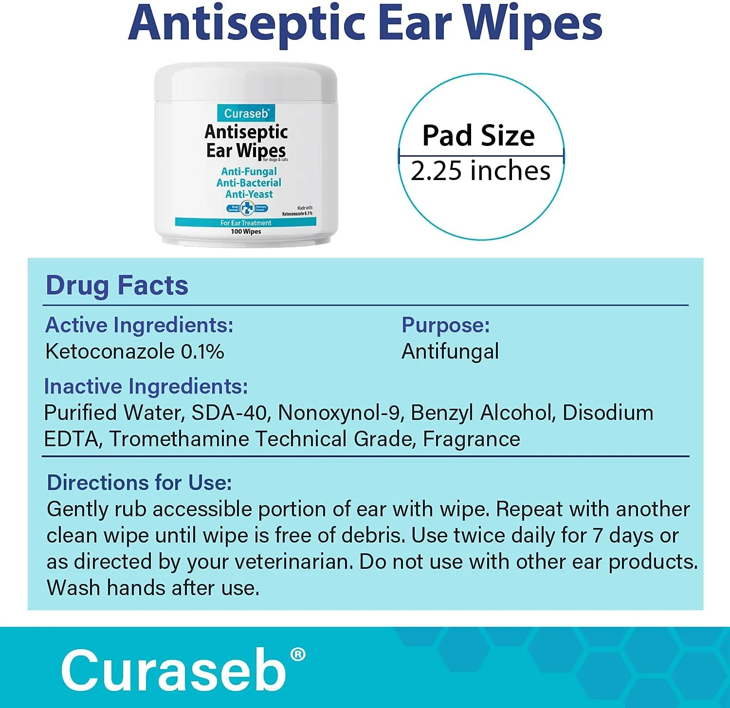 - Mejor cuando se utiliza con Curaseb Ear Flush (para tratar infecciones activas del oído dentro del canal auditivo) – ¡Las toallitas no son suficientes!