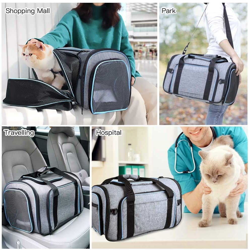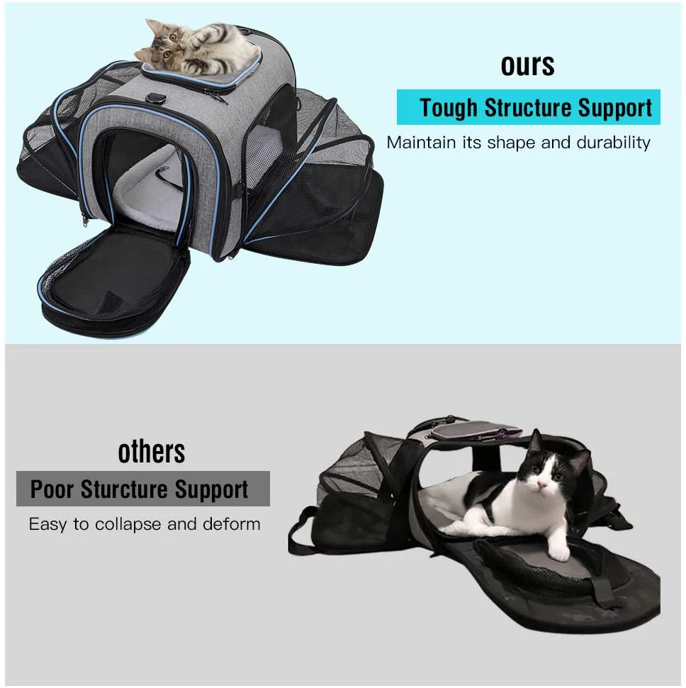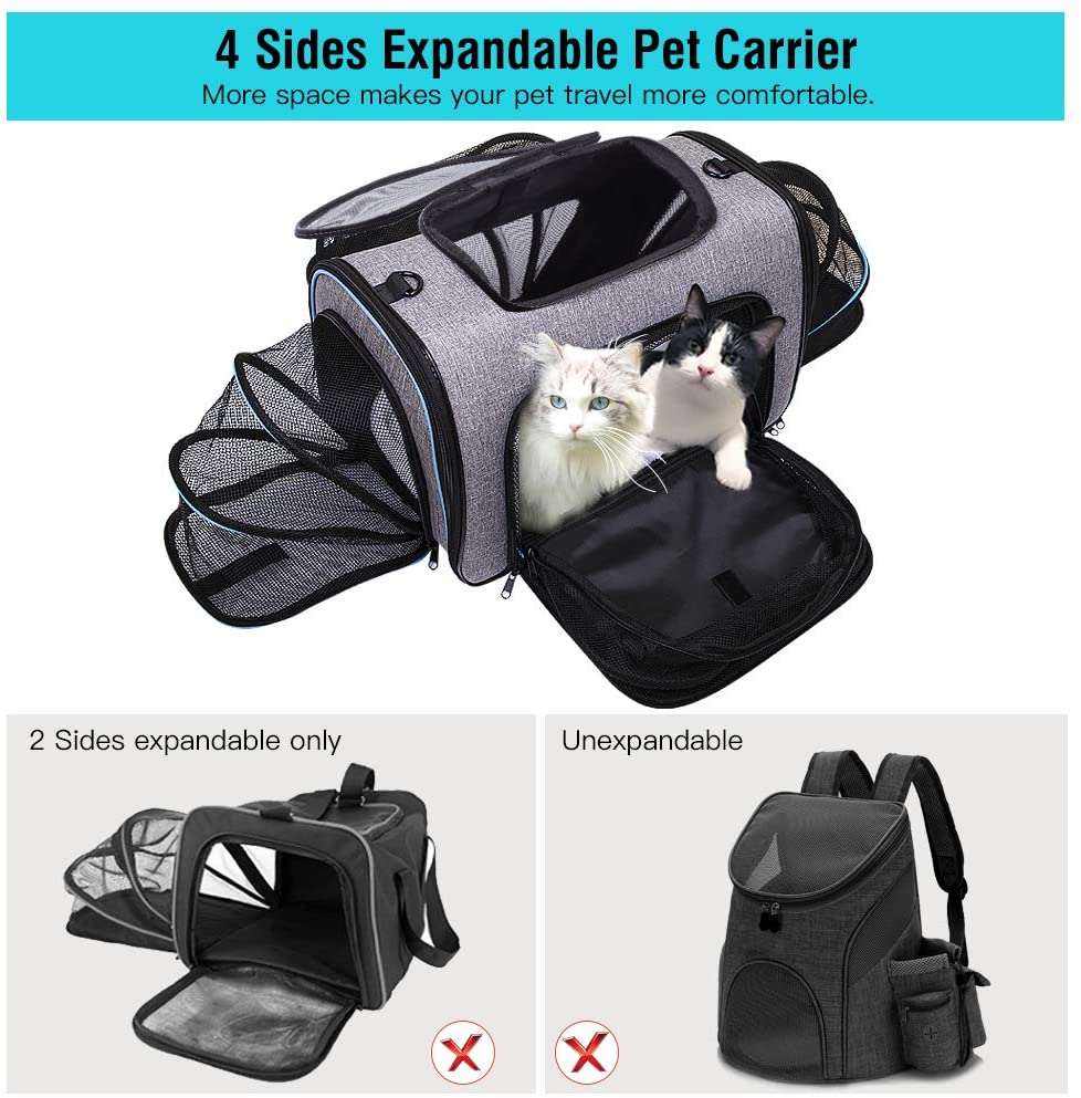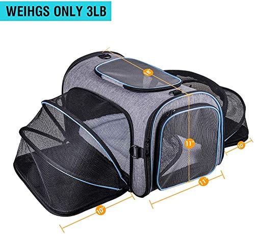- Expansión única de 4 maneras: fácil de plegar y abrir los cuatro lados para crear espacio adicional de nuestra espaciosa bolsa para mascotas para que tus gatos o perros se mantengan cómodos. Permite que tu mascota se mueva más cómodamente y reduce la ansiedad de confinamiento.