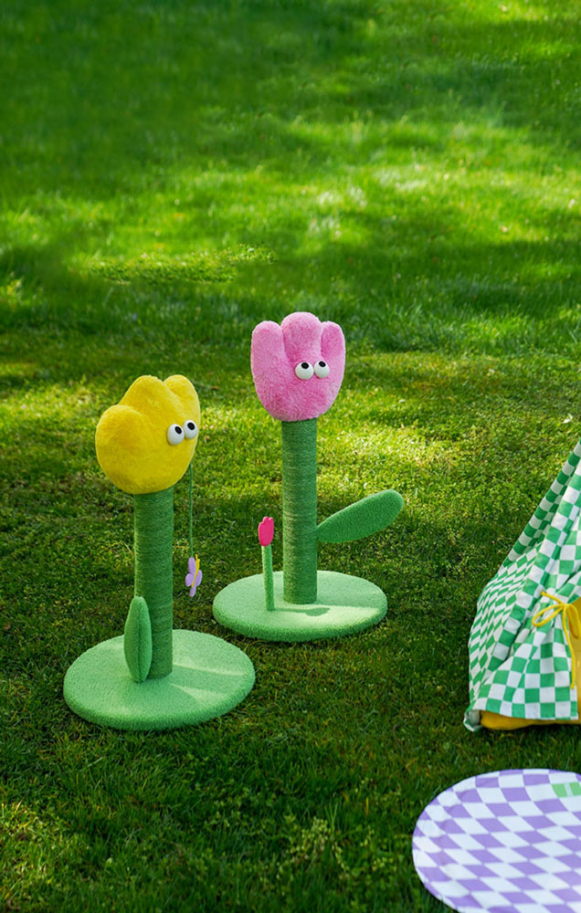 Butterscotch loved flowers. But she would get into trouble whenever she played with the blossoms in her house. So, her human decided to give her a tulip cat scratching post.