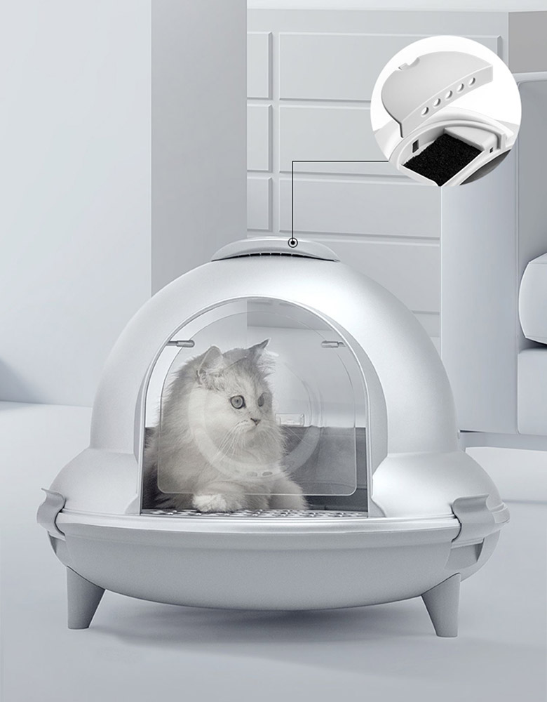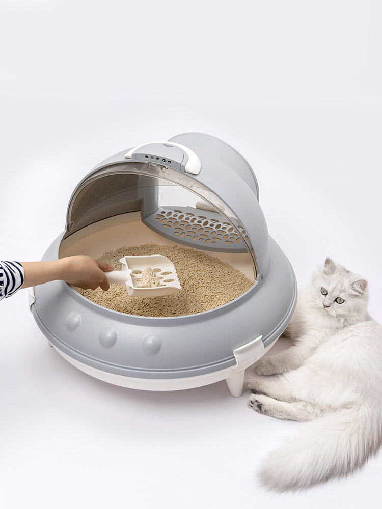 - Spherical Structure – The huge spherical space is suitable for cats of different ages and sizes. Cats can come and go freely in the spacious circular spaceship litter box.