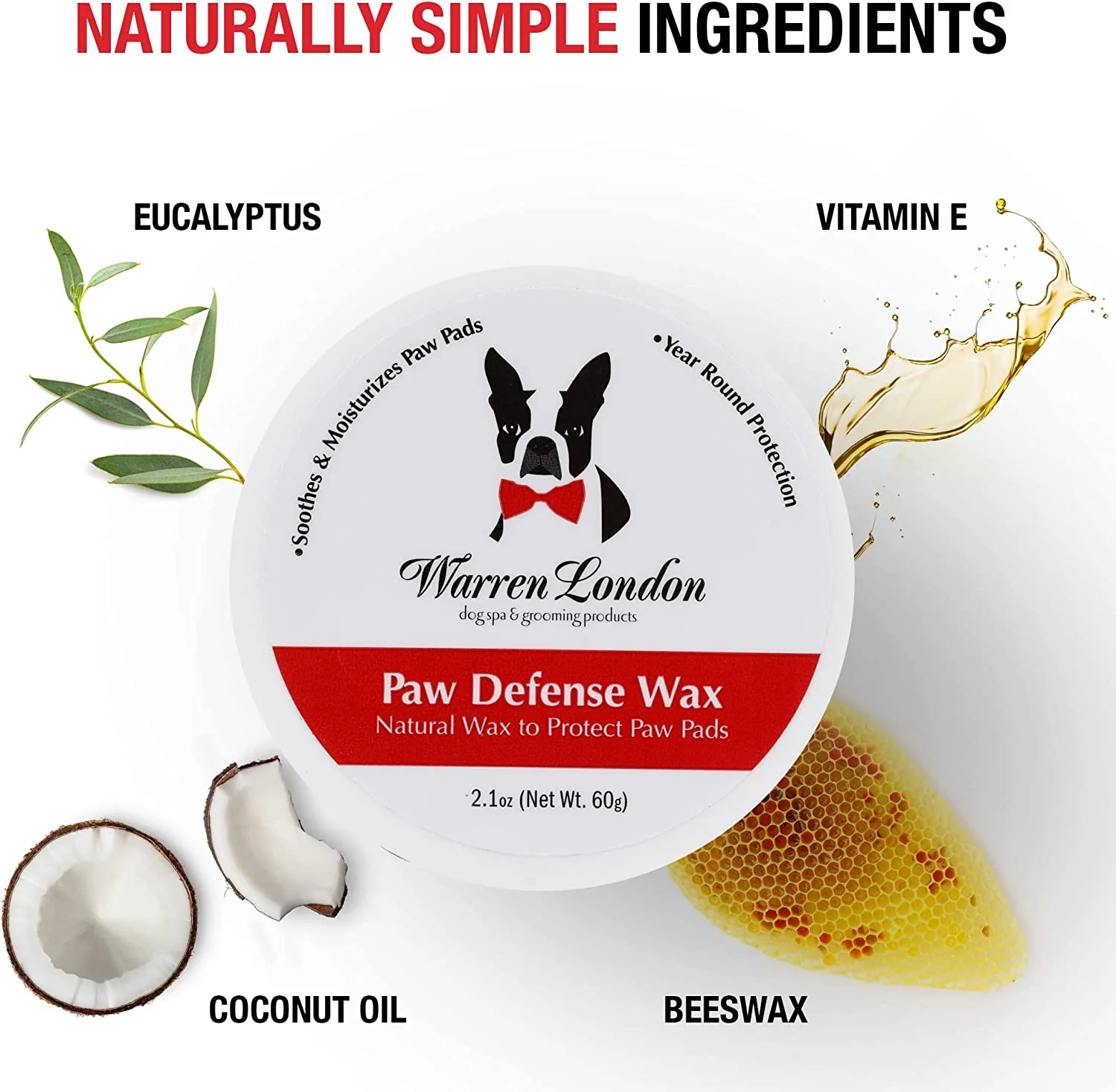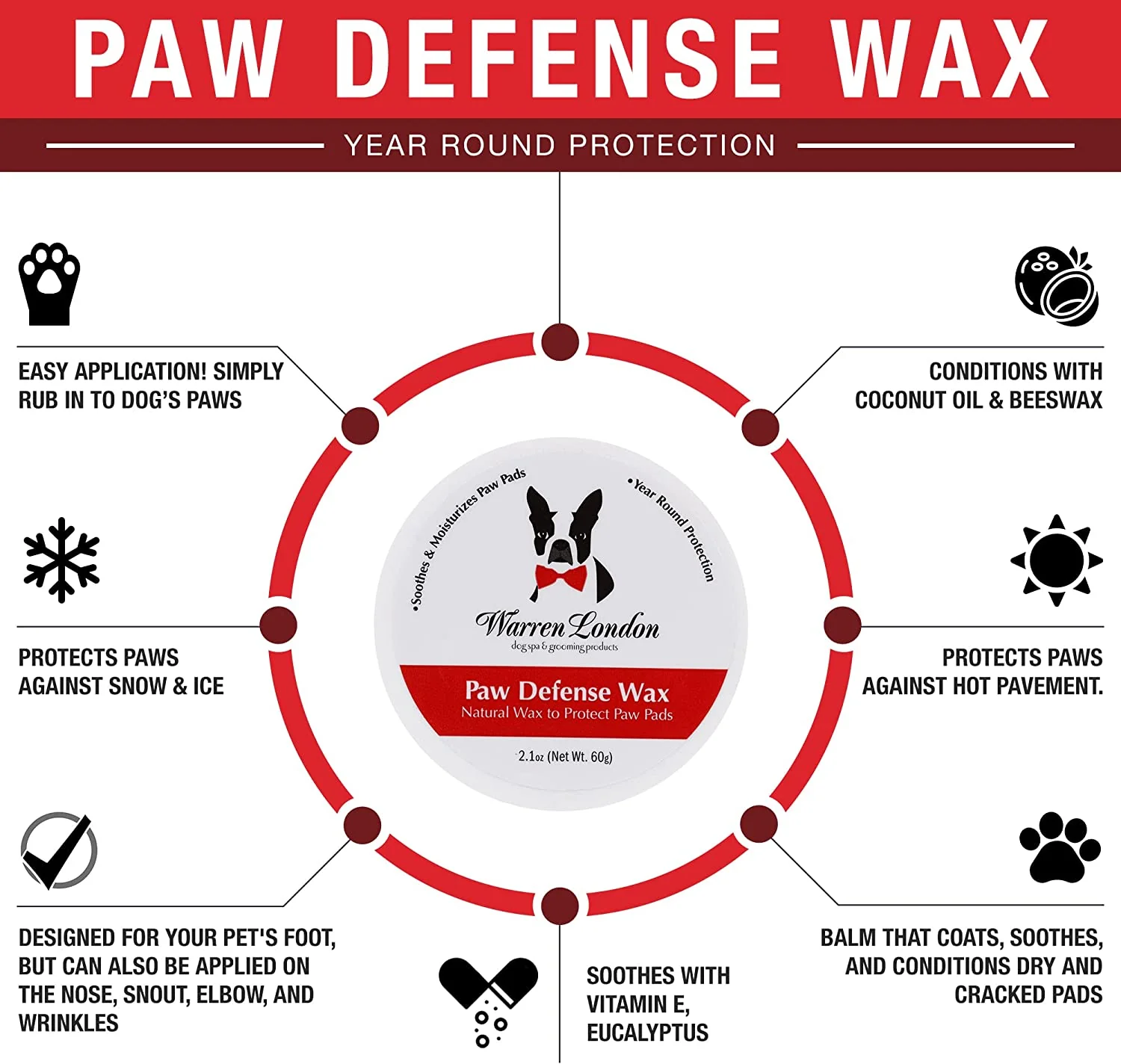 - Protección: uso durante todo el año como una capa de protección (o pawtection) de elementos. Esta cera para patas de perros funciona como un escudo protector en nieve y hielo para evitar resbalones en invierno, y funciona bien para proteger la piel de los pies de las mascotas del asfalto caliente y el pavimento.
