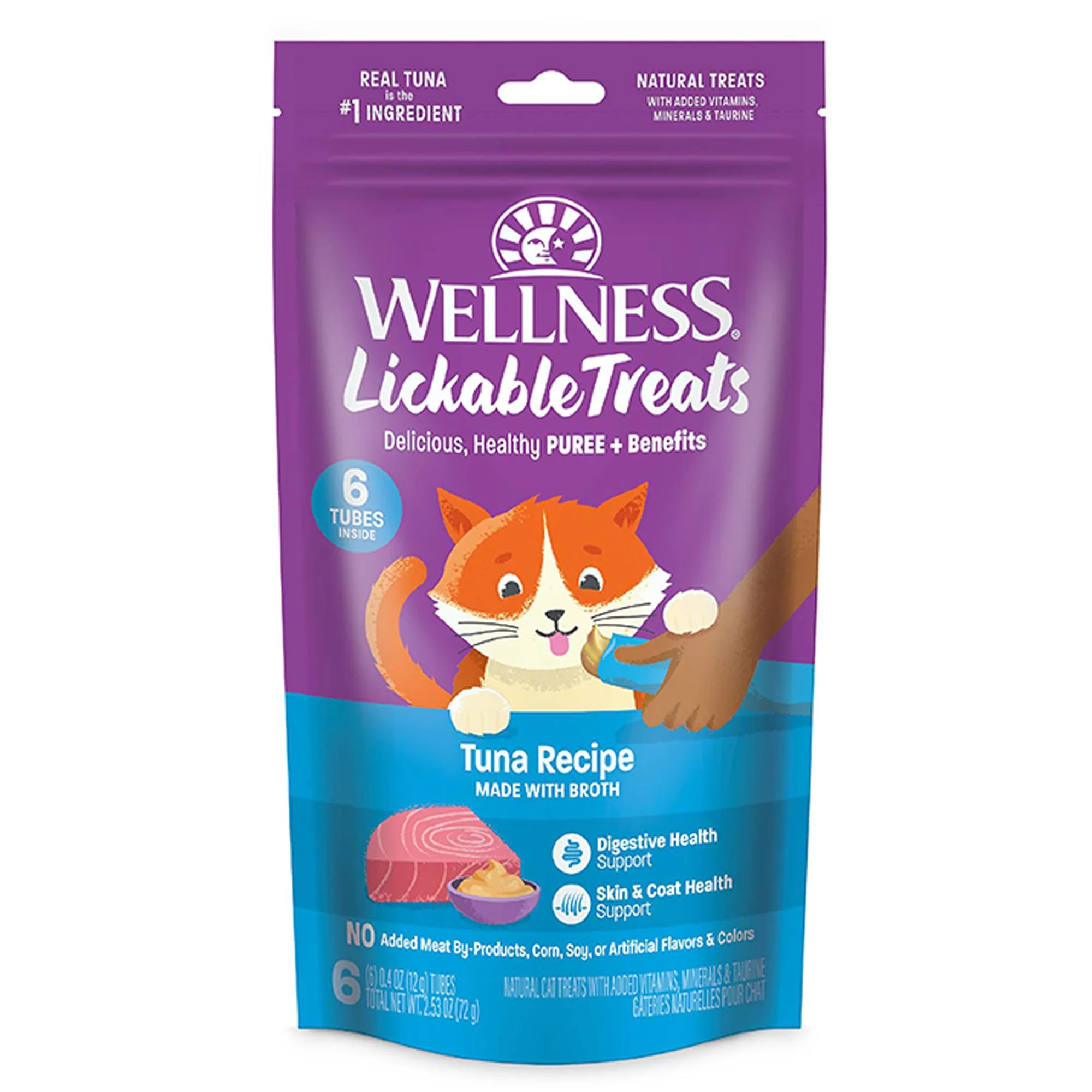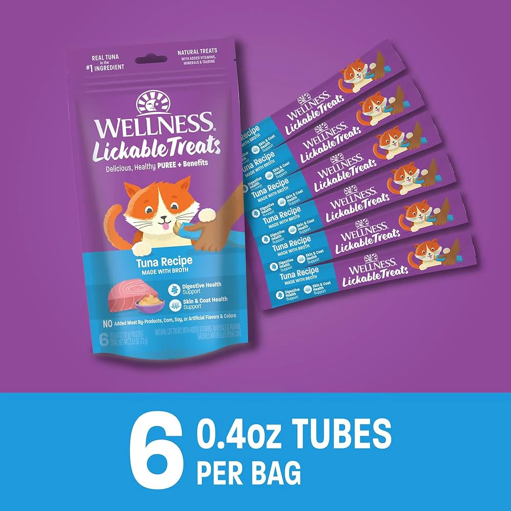 Golosinas tipo pure ideales para gatos adultos. Cada tubo entrega una experiencia sabrosa y nutritiva con proteínas de alta calidad, sin subproductos cárnicos, ni maíz, soya, sabores ni colores artificiales. Ayudan a respaldar la salud digestiva e inmune de tu gato