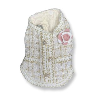 Chaleco tipo Tweed Beige con adorno de Camelia